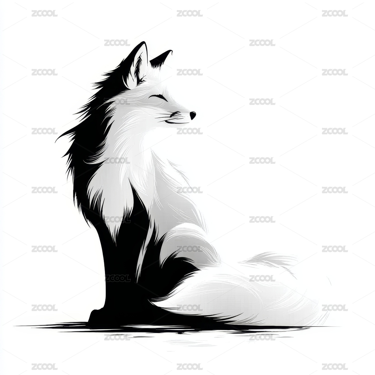 黑白灵狐静坐侧影