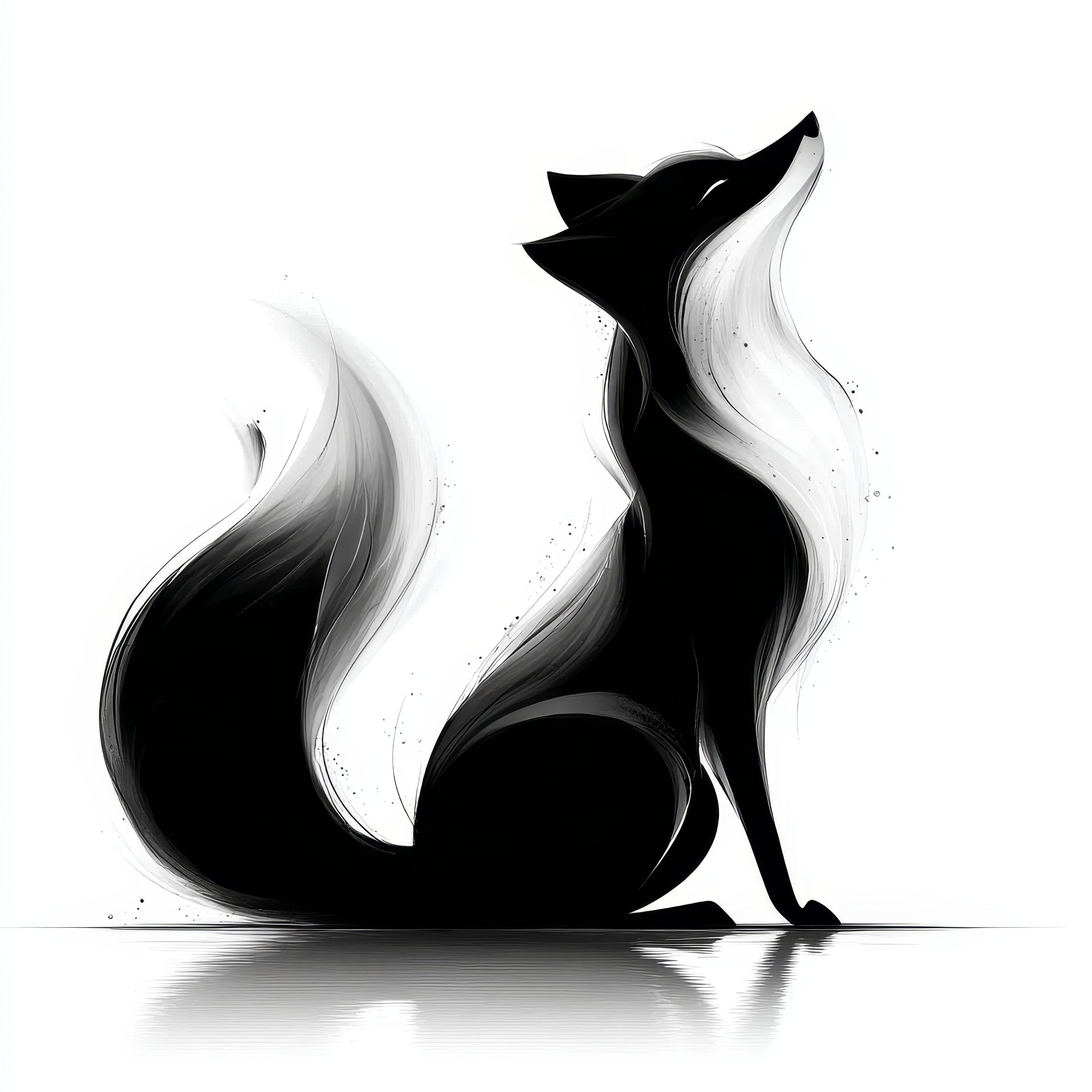 狐狸,轮廓,标志,极简,简单,黑色,白色,侧面,视图,坐姿