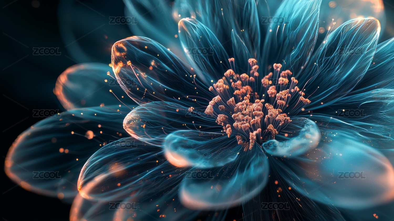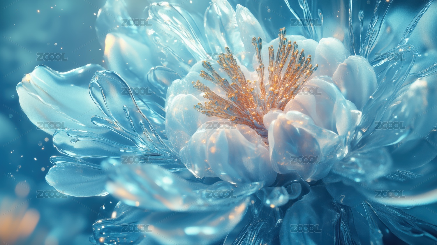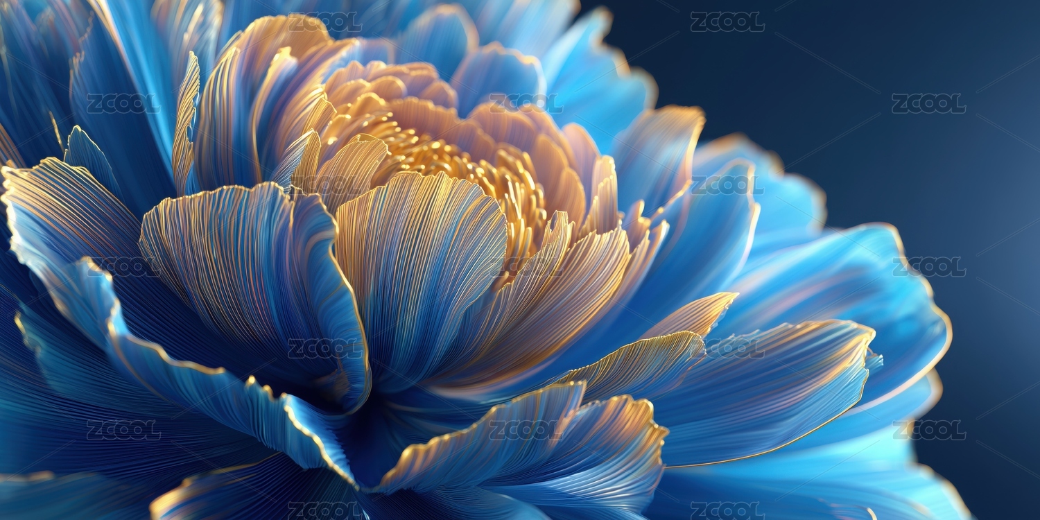 唯美梦幻盛开金色花蕊蓝色花朵3D立体插画