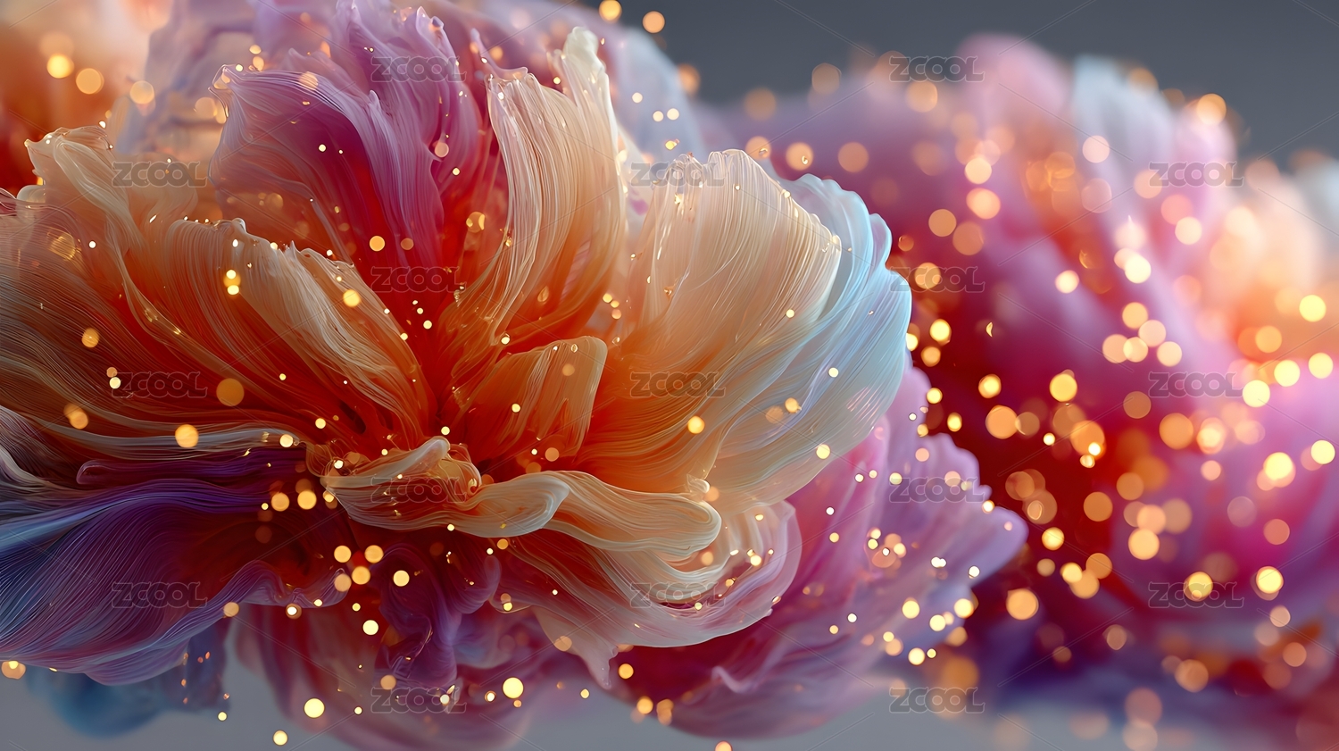 梦幻粒子花朵微距摄影艺术装饰画设计素材
