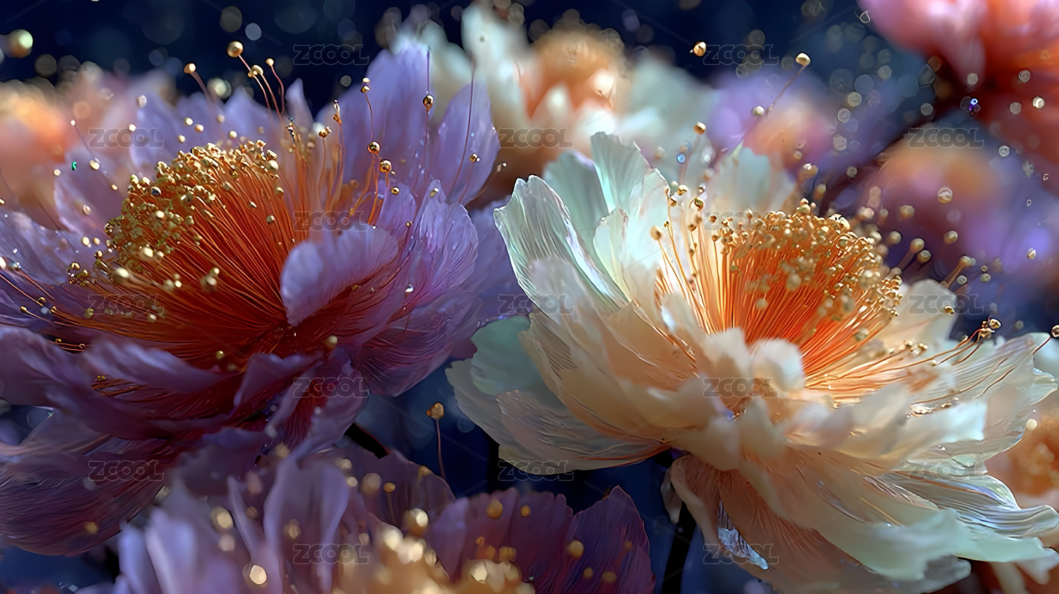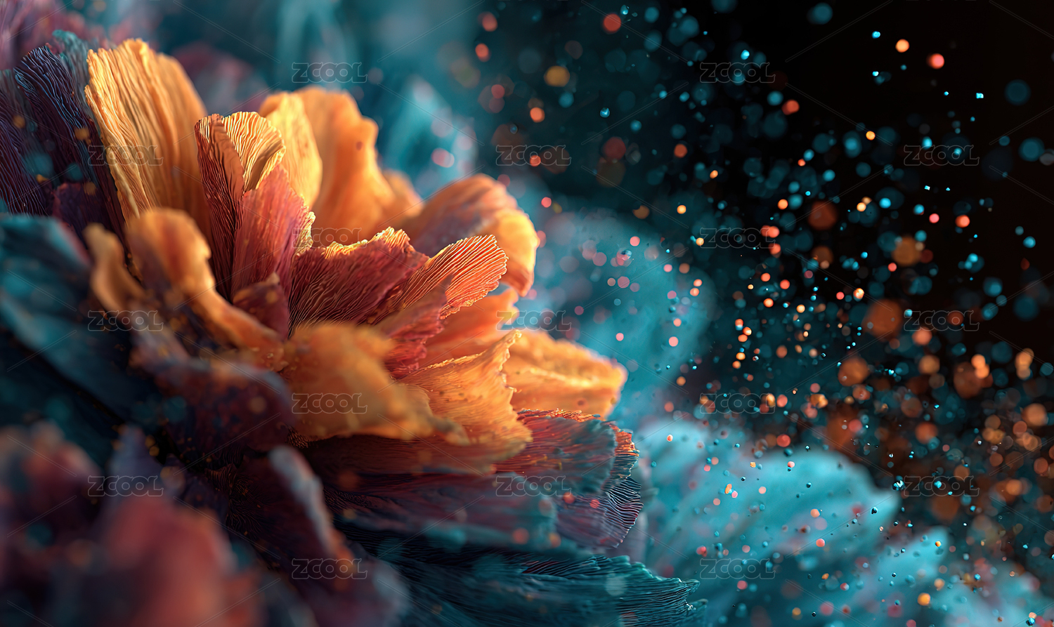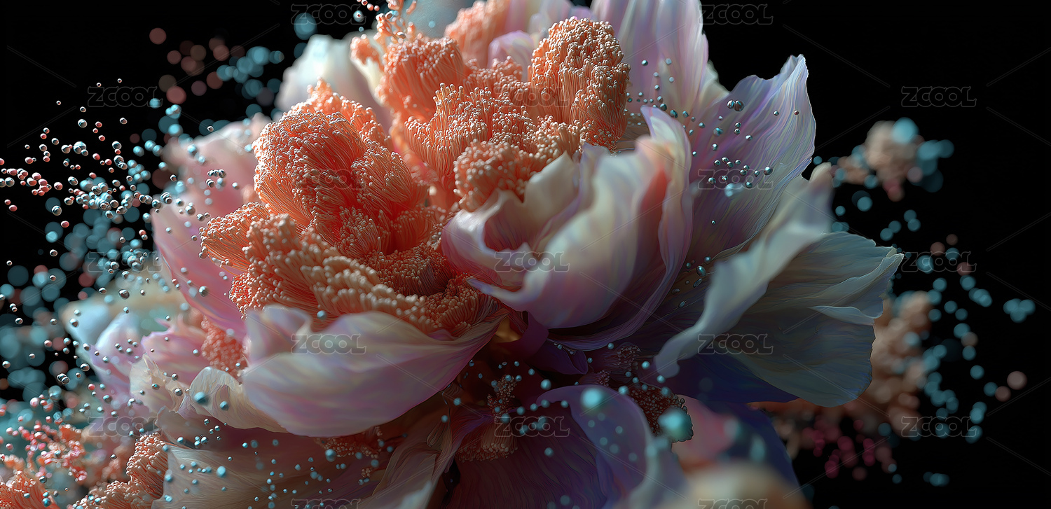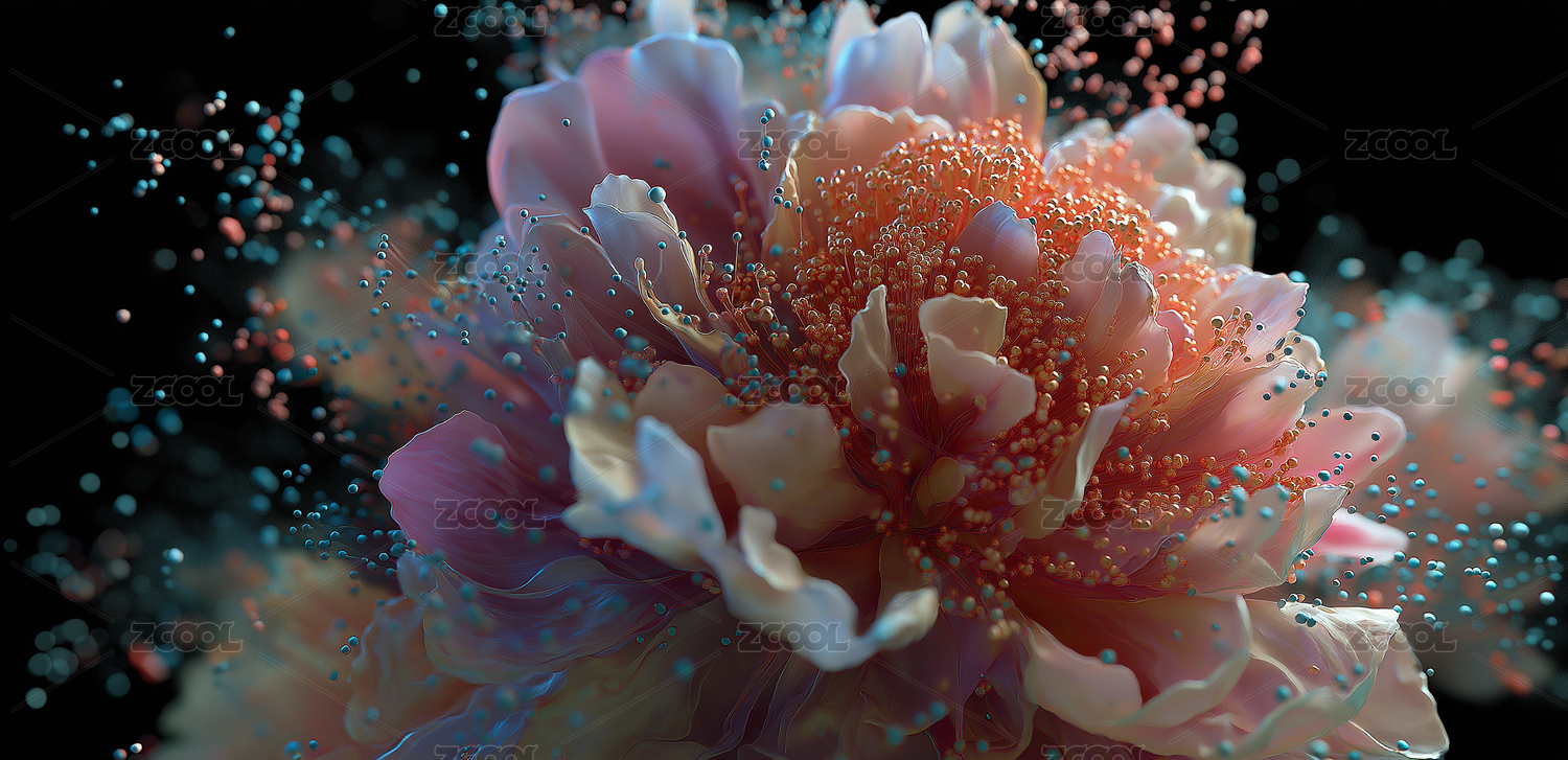 梦幻粒子绽放微距摄影艺术装饰画设计素材