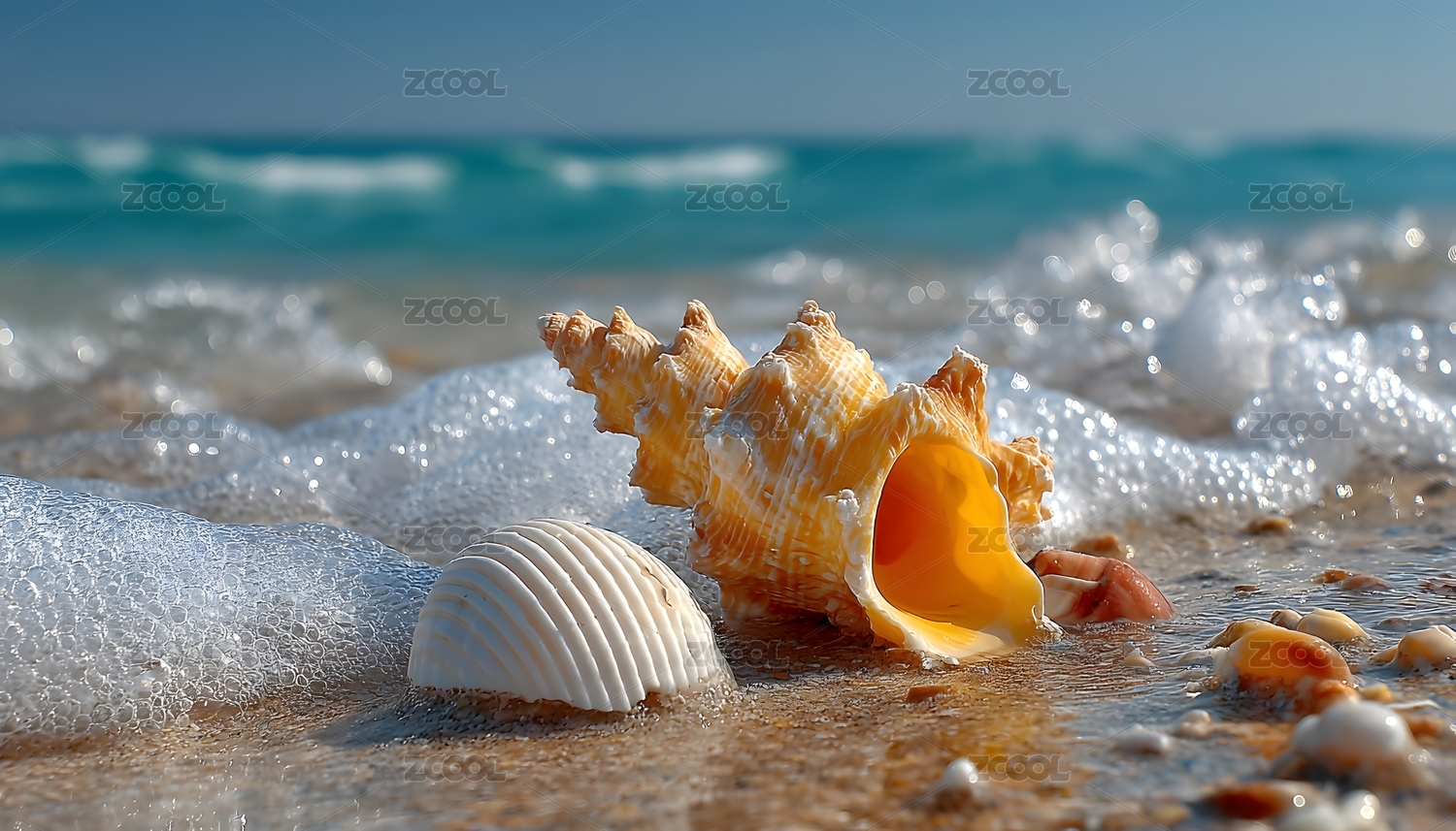 休闲,海滩,贝壳,海浪,沙滩,海岸,海洋,夏天,度假,旅行