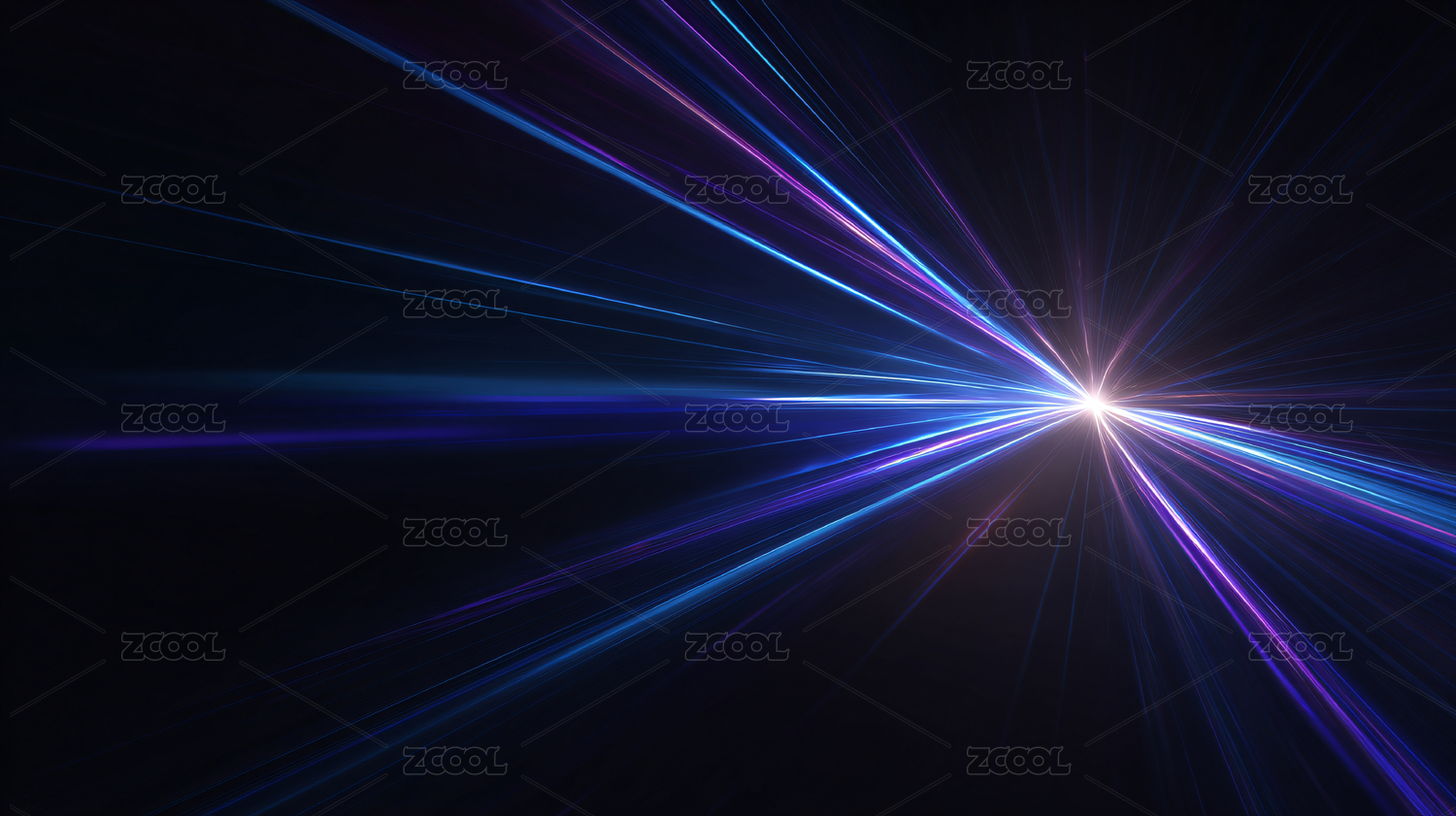 暗背景下彩色光线放射呈现科技动感的视觉效