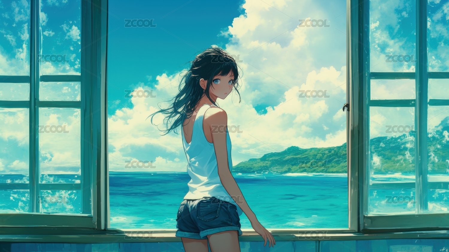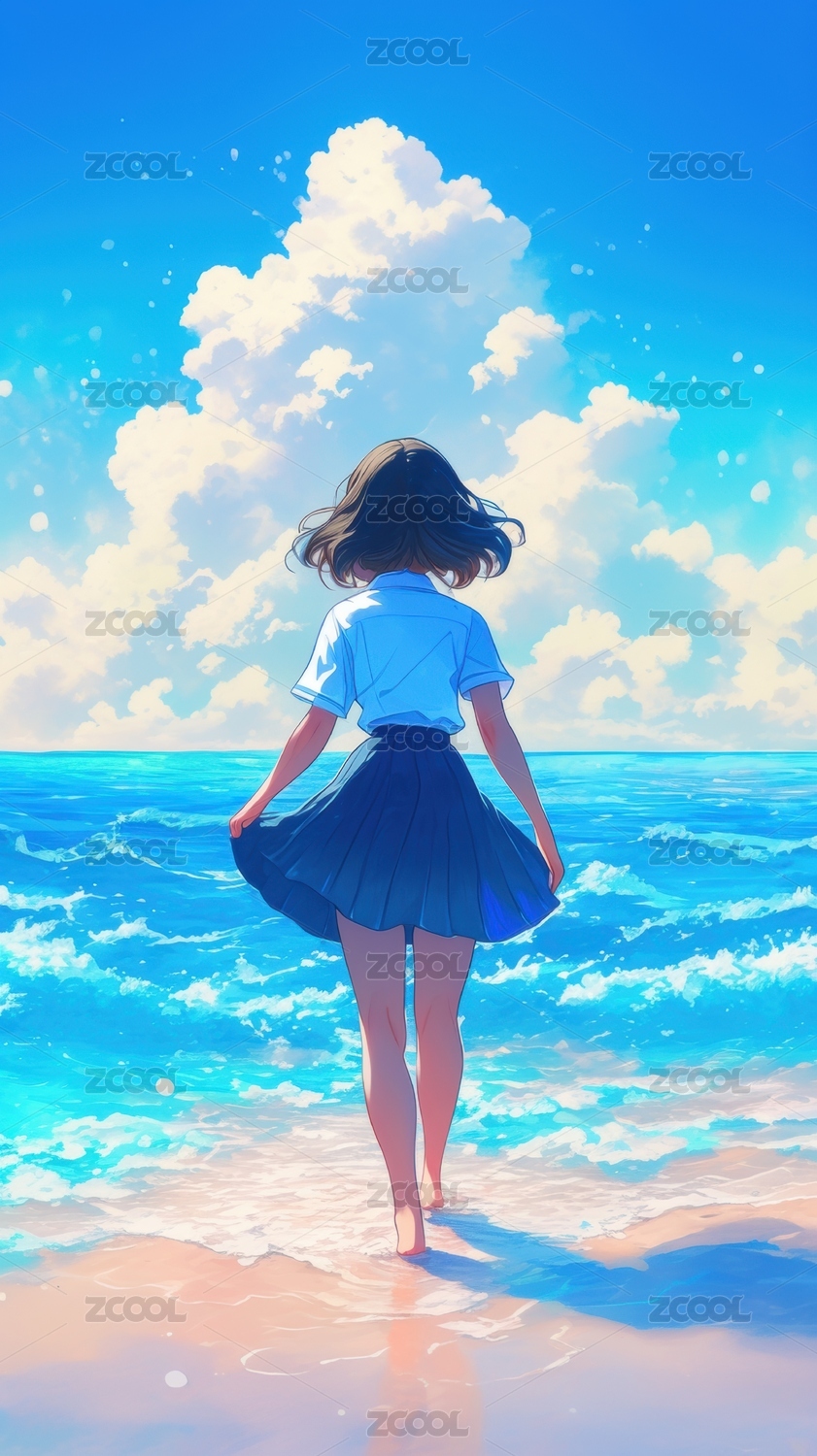 美少女日系卡通漫画清新治愈唯美AI数字艺