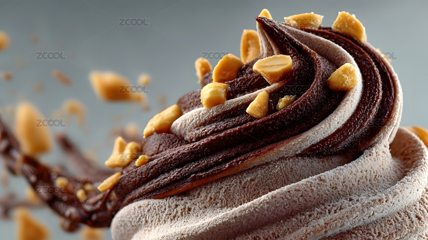 巧克力冰淇淋花生碎特写
