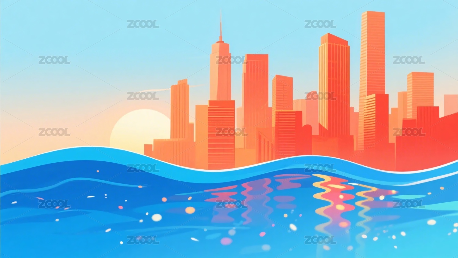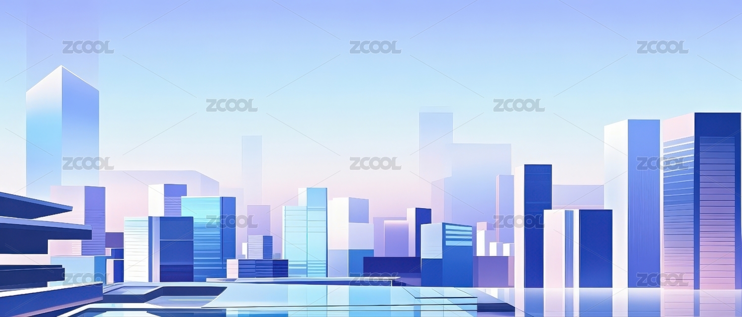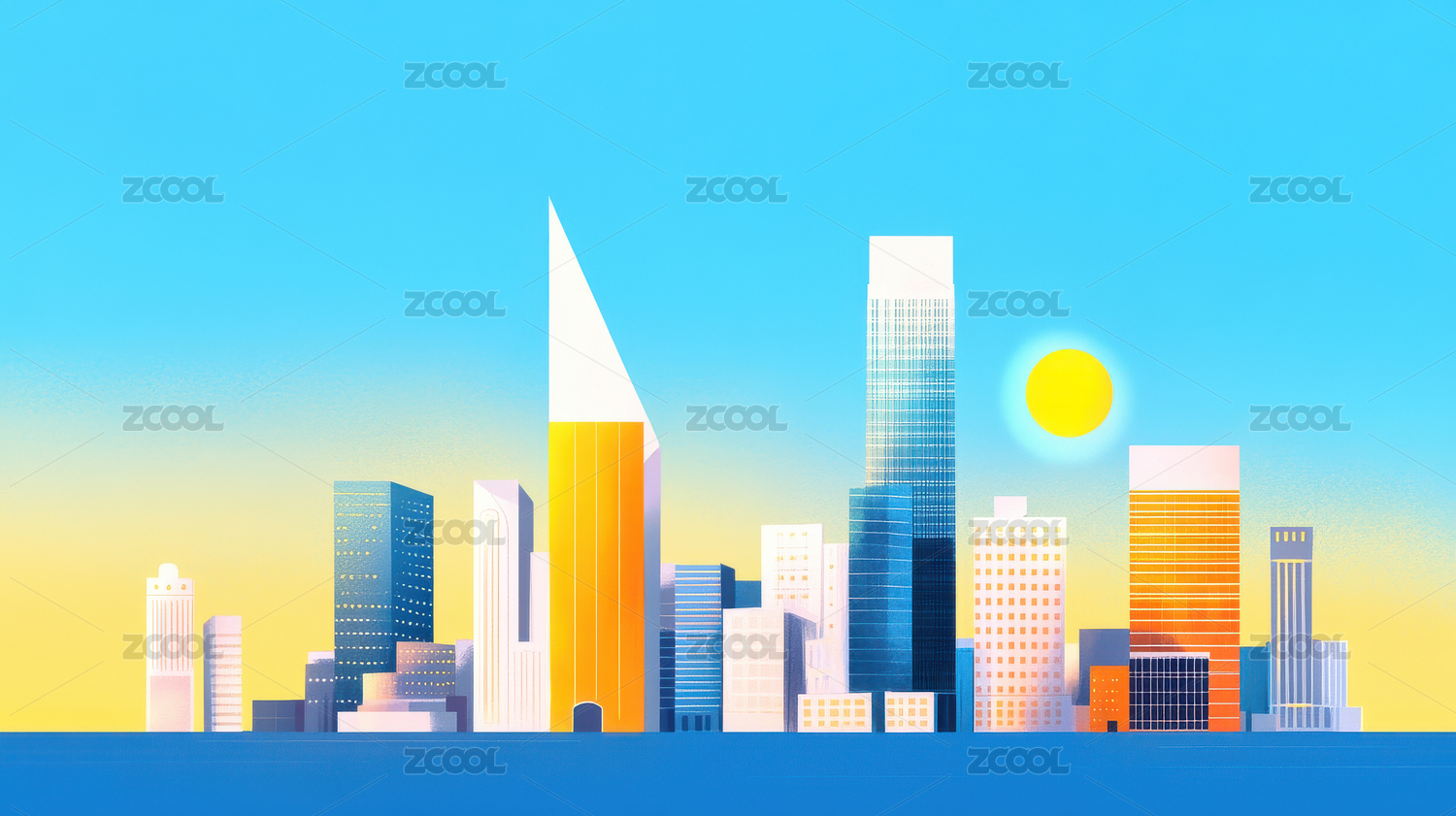 城市,高楼,大厦,粉色,蓝色,黄色,柔和,太阳,圆润,暖黄