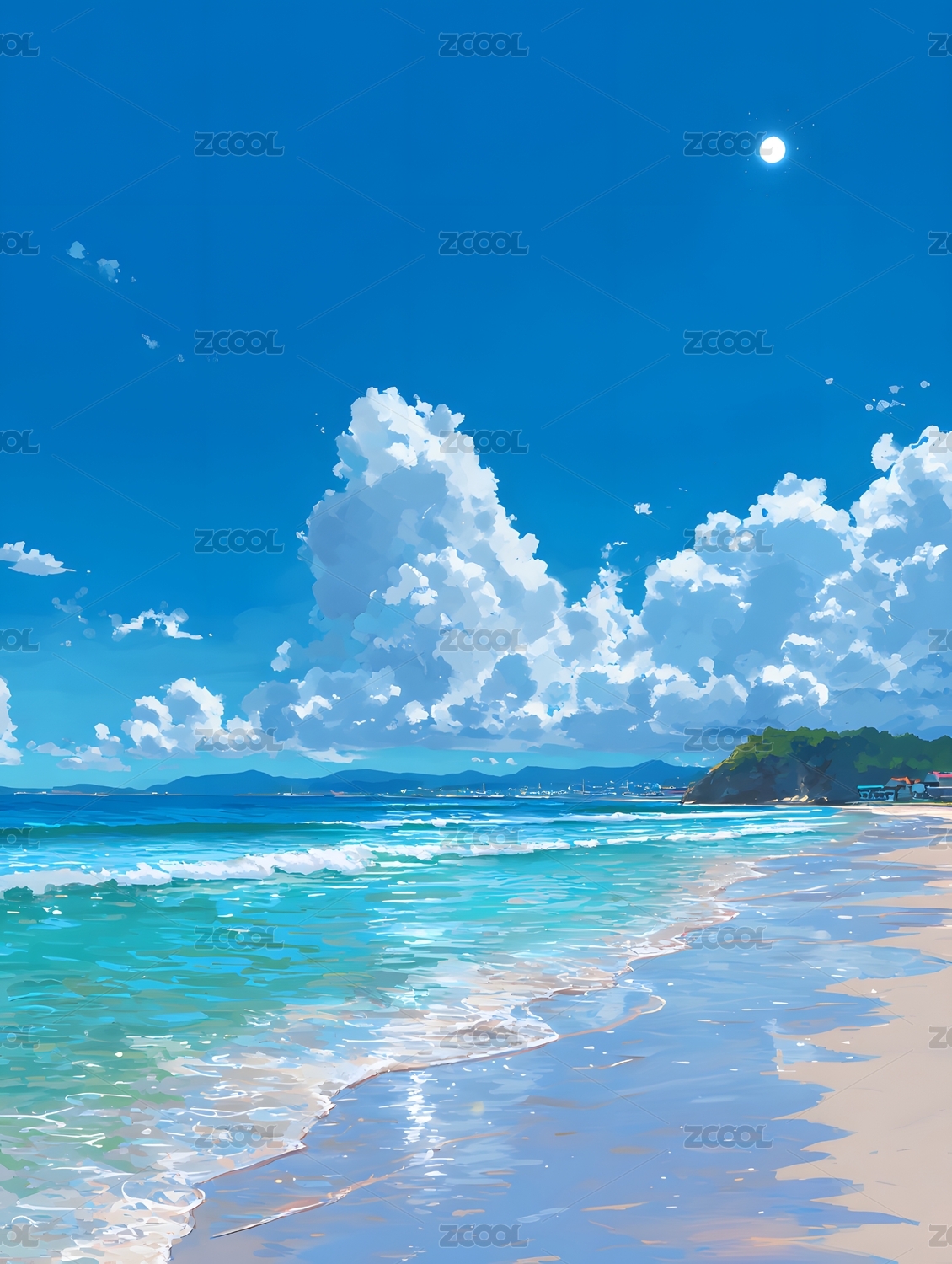蓝天,白云,大海,海浪,沙滩,阳光,海水,海风,晴空,泡沫