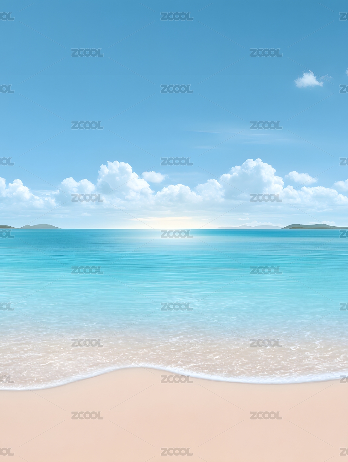 蓝天碧海间的洁白云朵与沙滩