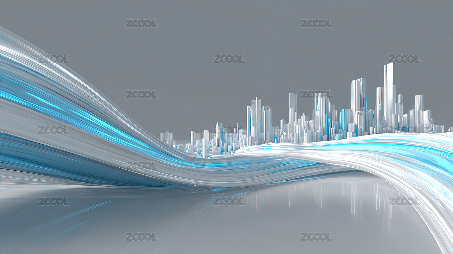 蓝色波浪与城市轮廓
