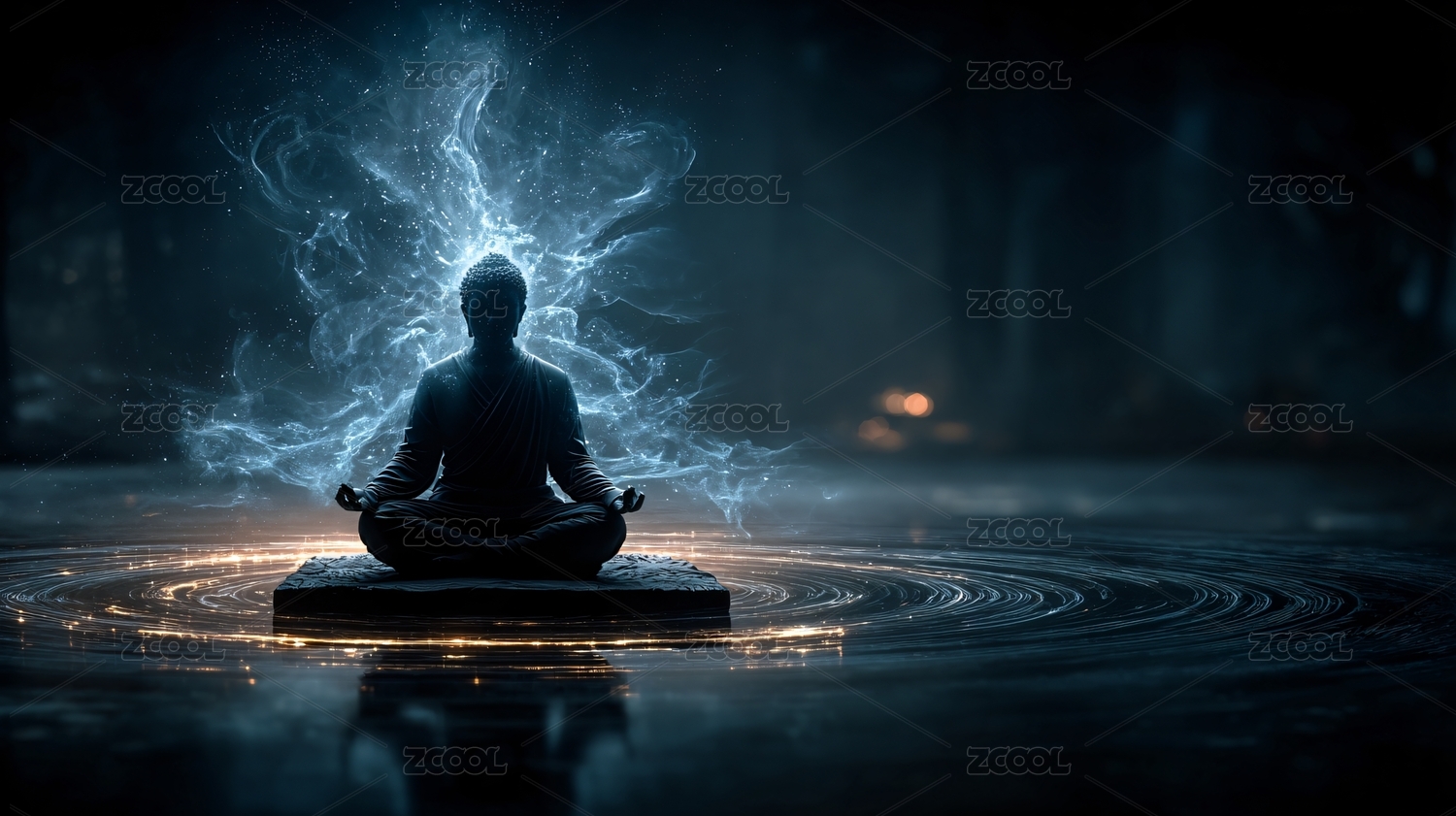 冥想打坐蓝色光效