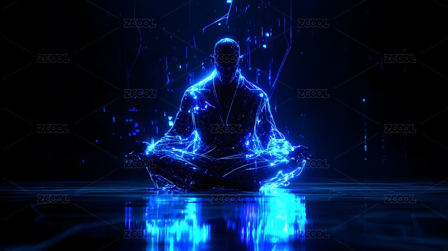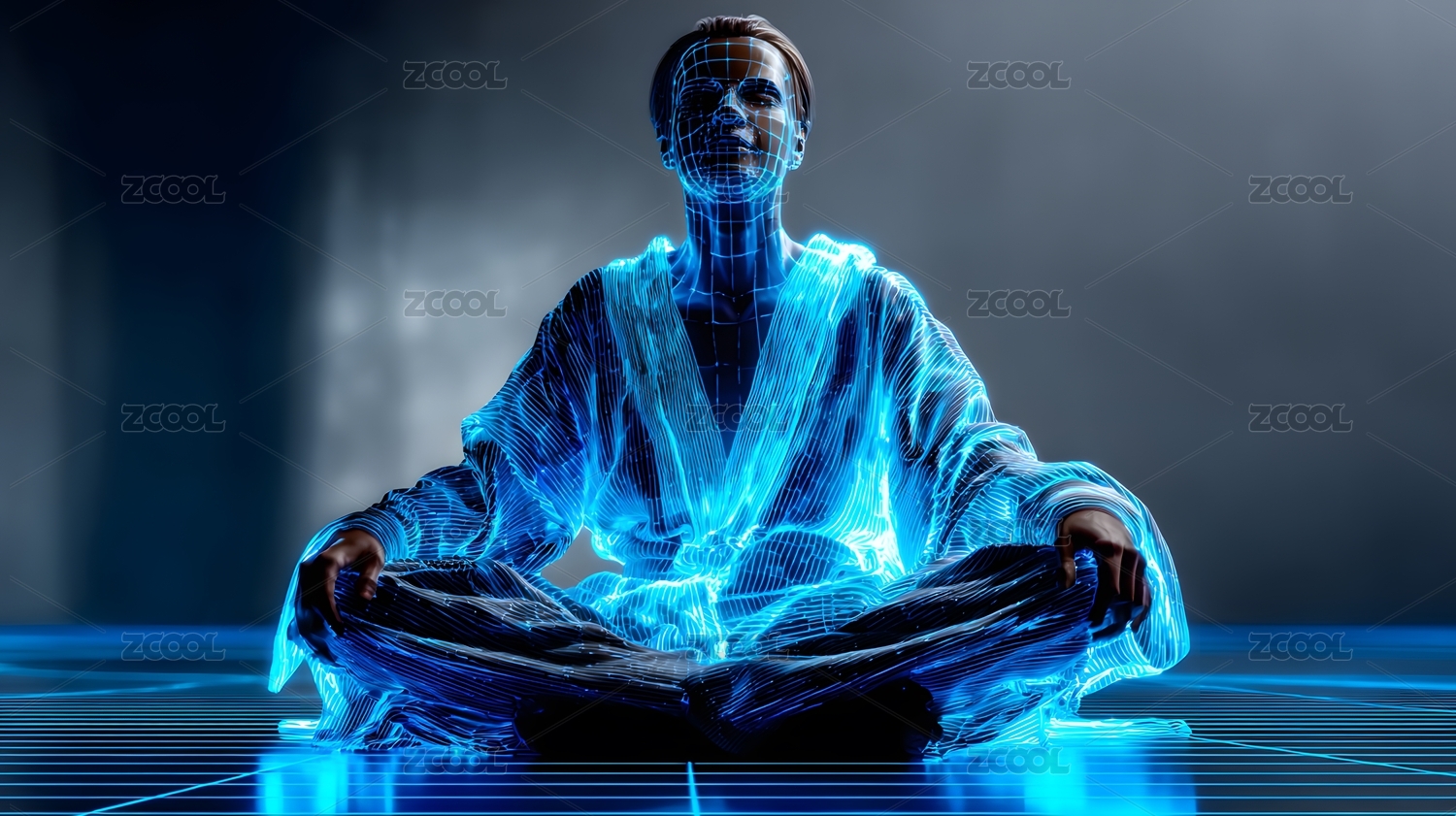 科技感数字人打坐冥想