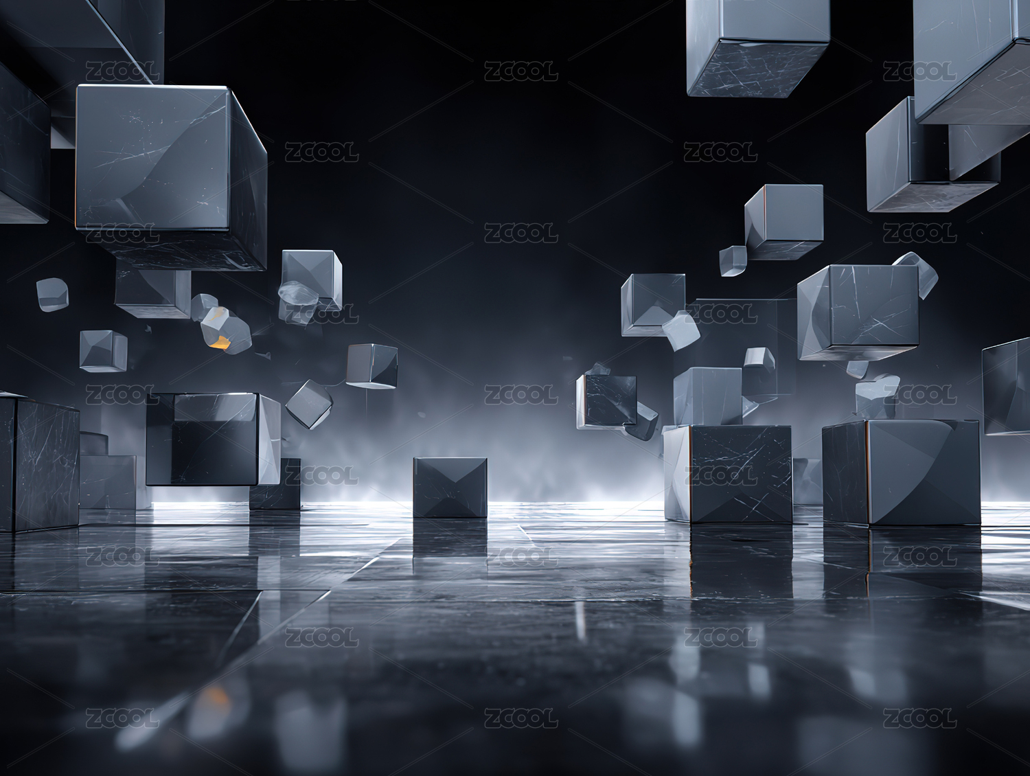 抽象,背景,光影,空间,悬浮,立方体,质感,构图,现代,深色