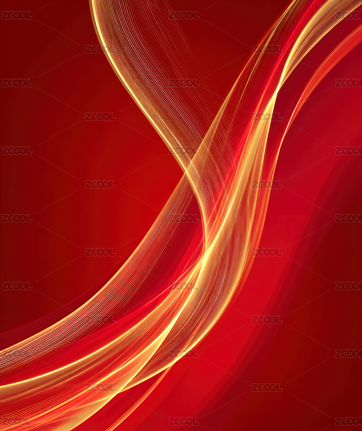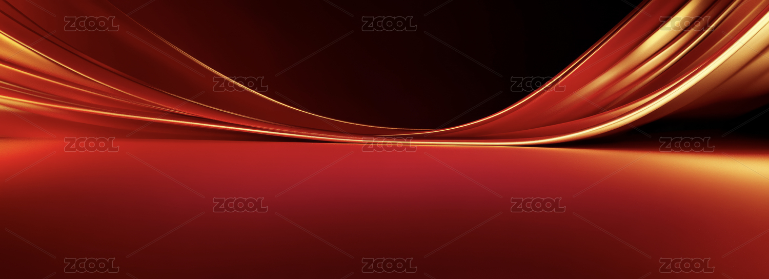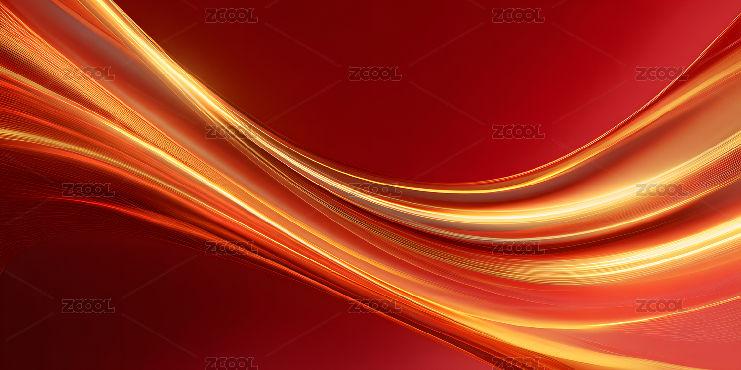 红色曲线金色光线抽象背景图