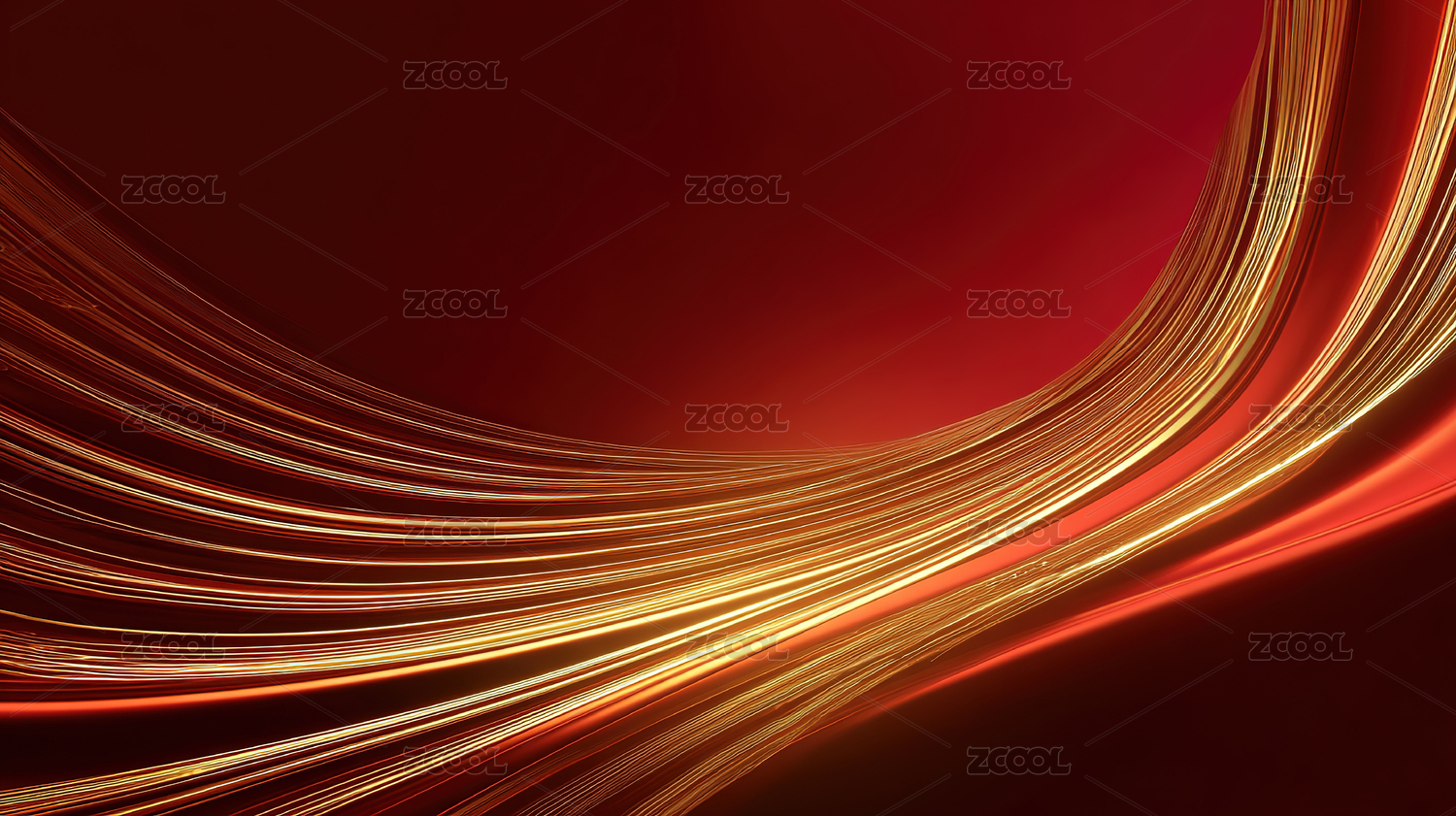 红色背景金色流线抽象图案