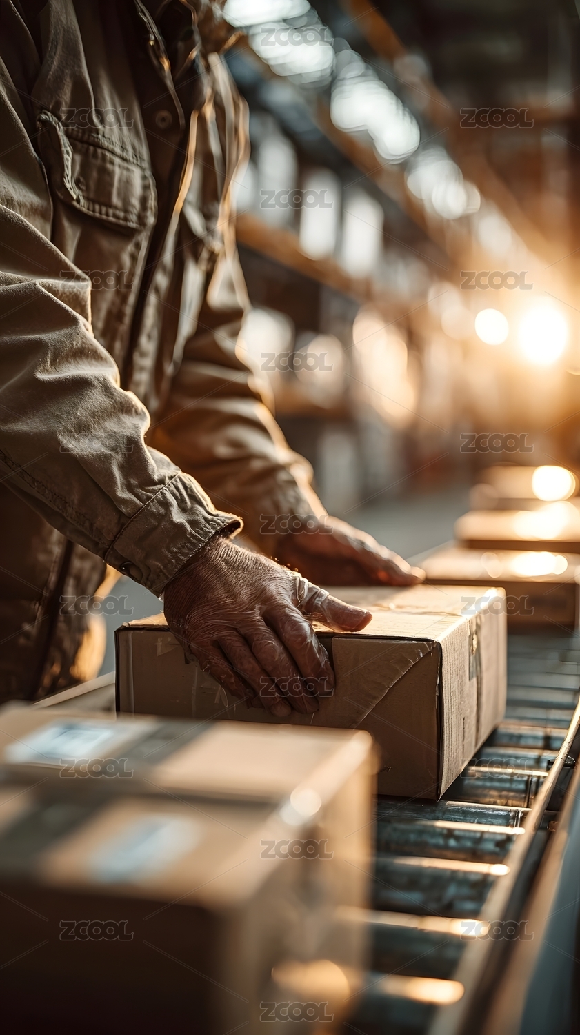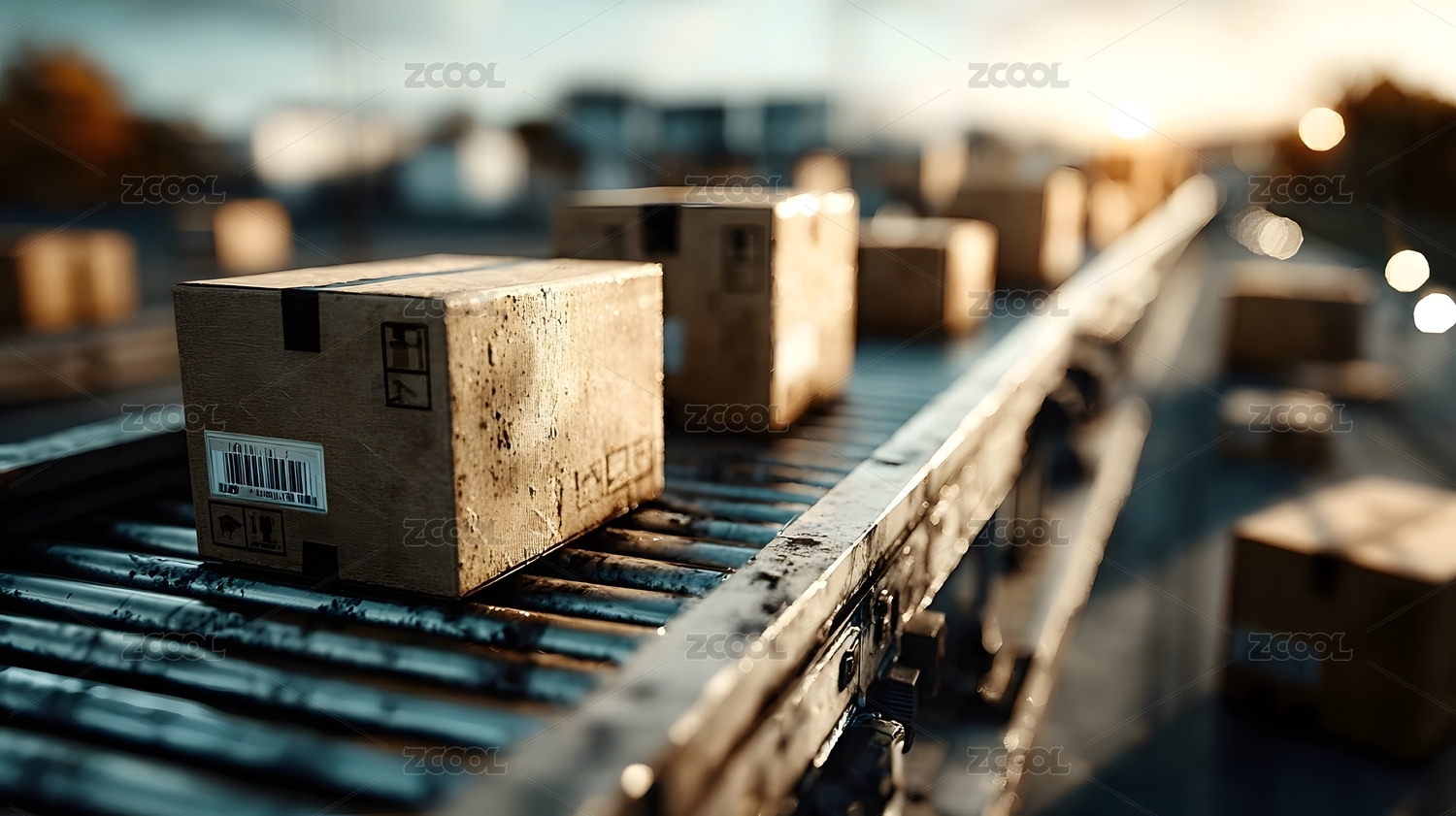 包裹纸箱包装在仓库传送带上,电子商务产品