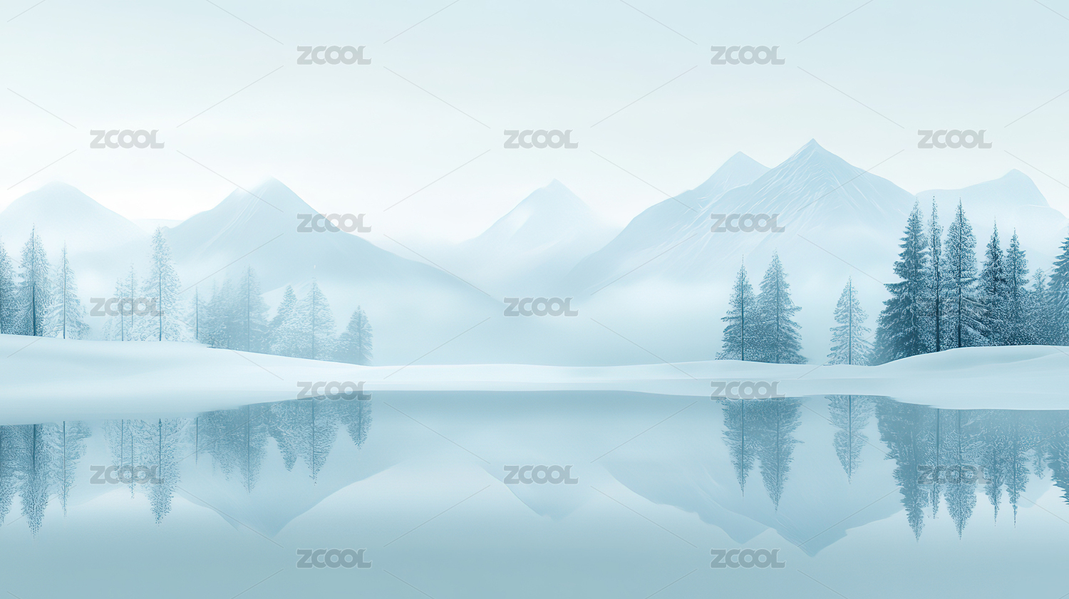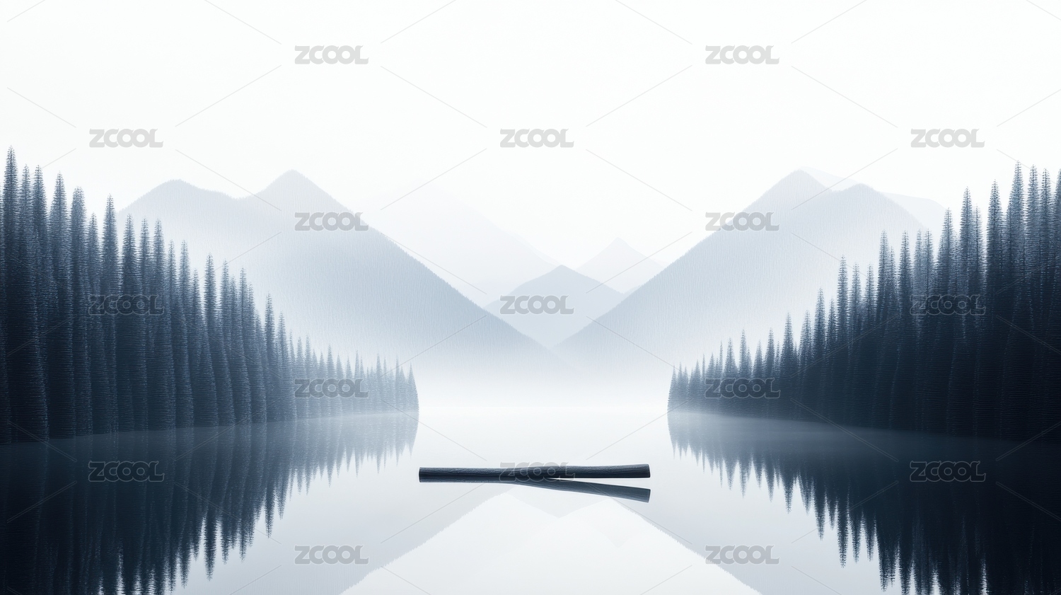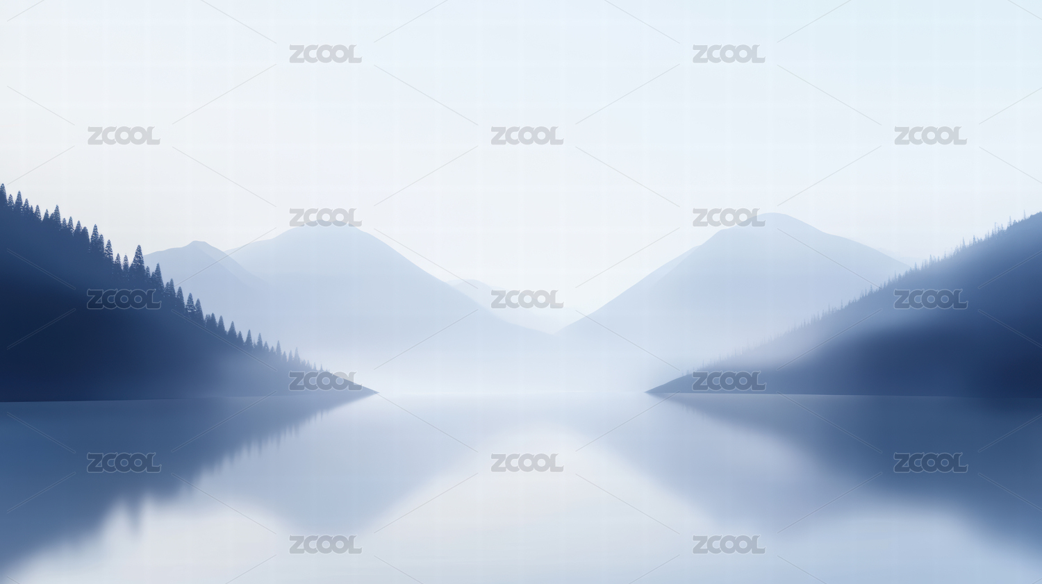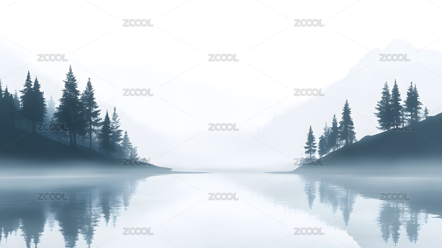 雪山,湖泊,倒影,山水,雾气,树林,宁静,水面,山峰,自然风光