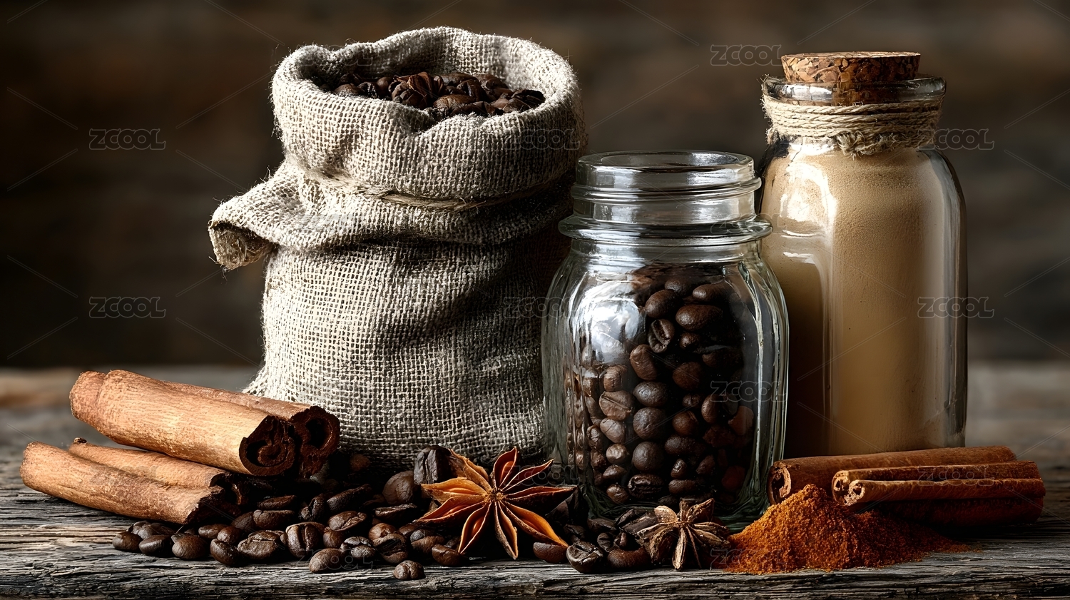 咖啡豆与香料的组合