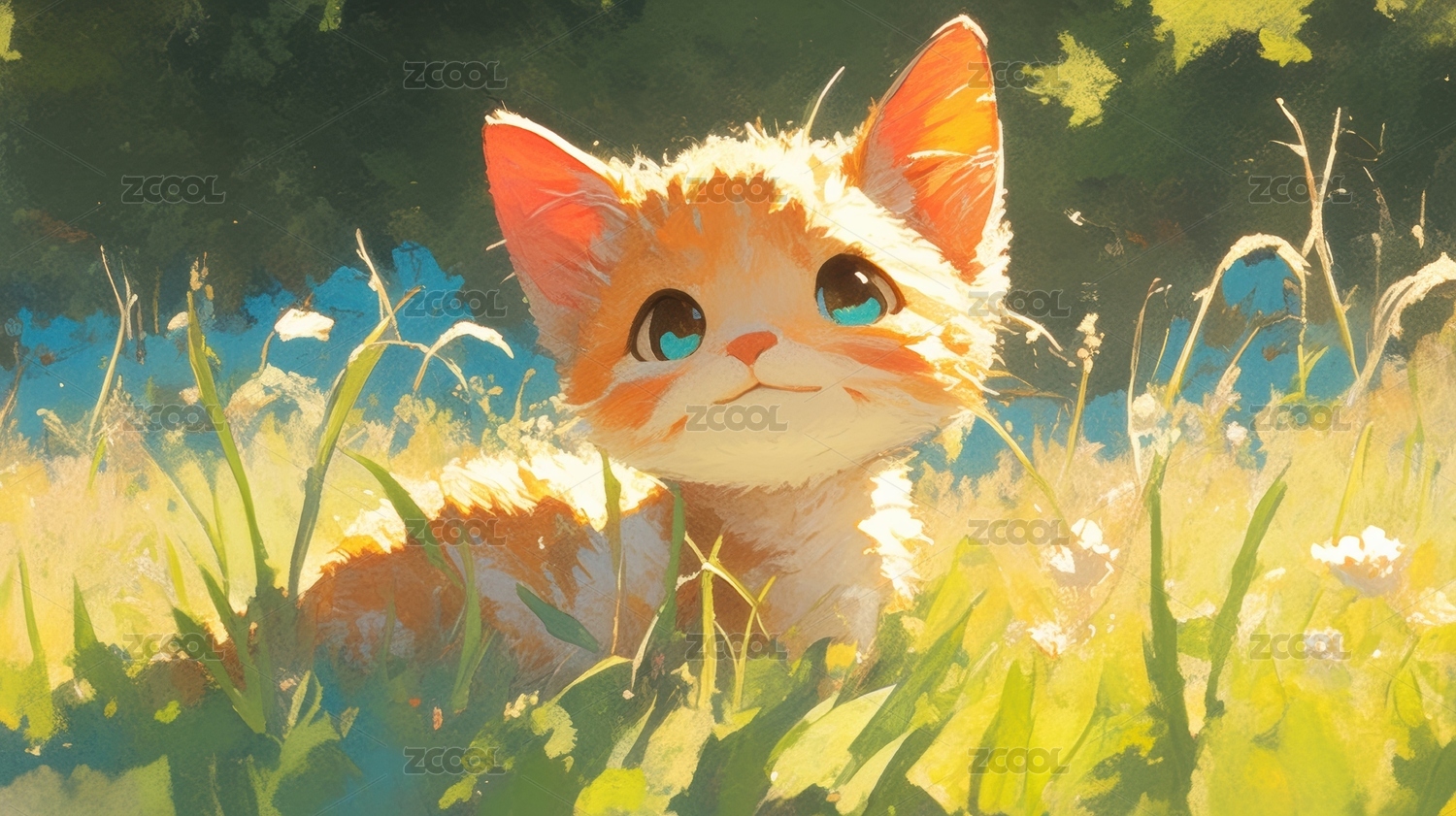 草丛中的可爱猫咪