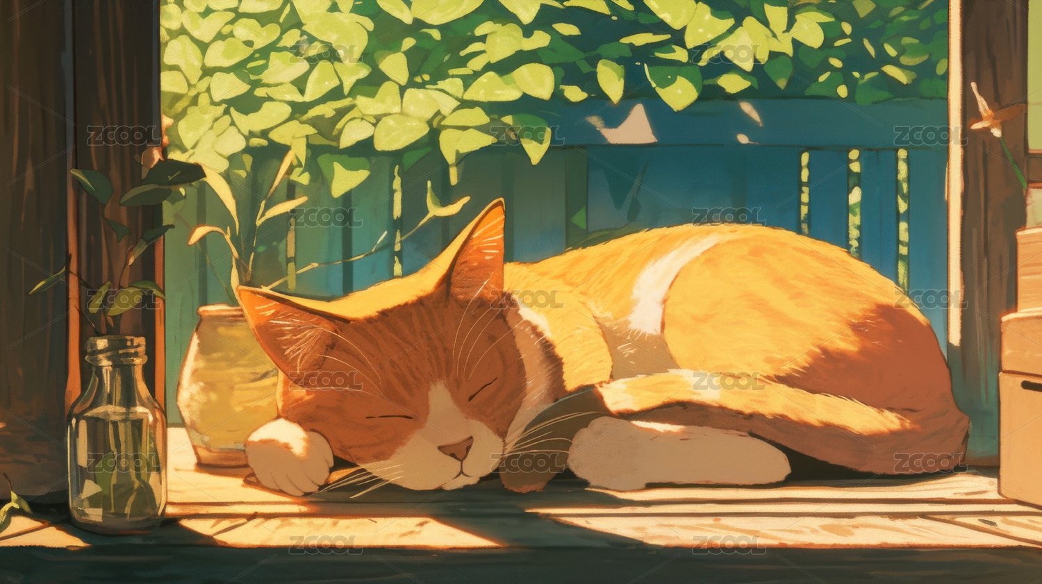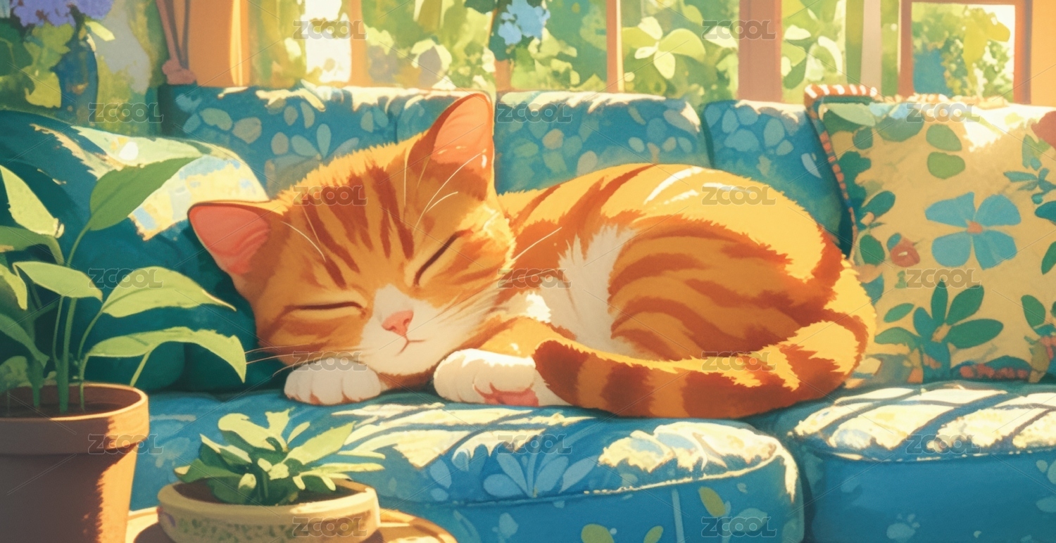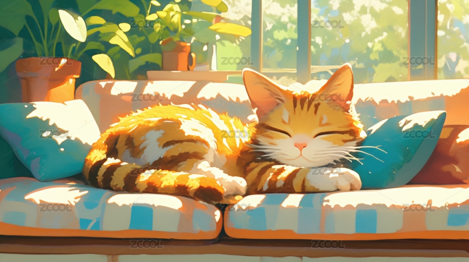 猫咪,自然,温馨,温暖,明亮,和谐,阳光,植物,生活,室内