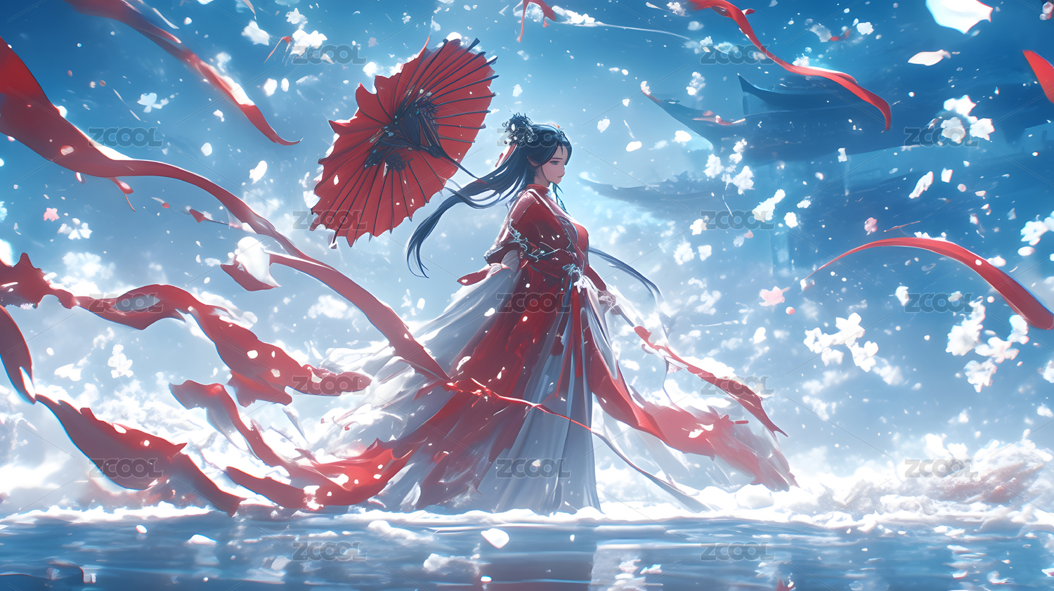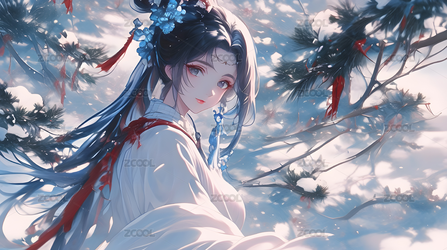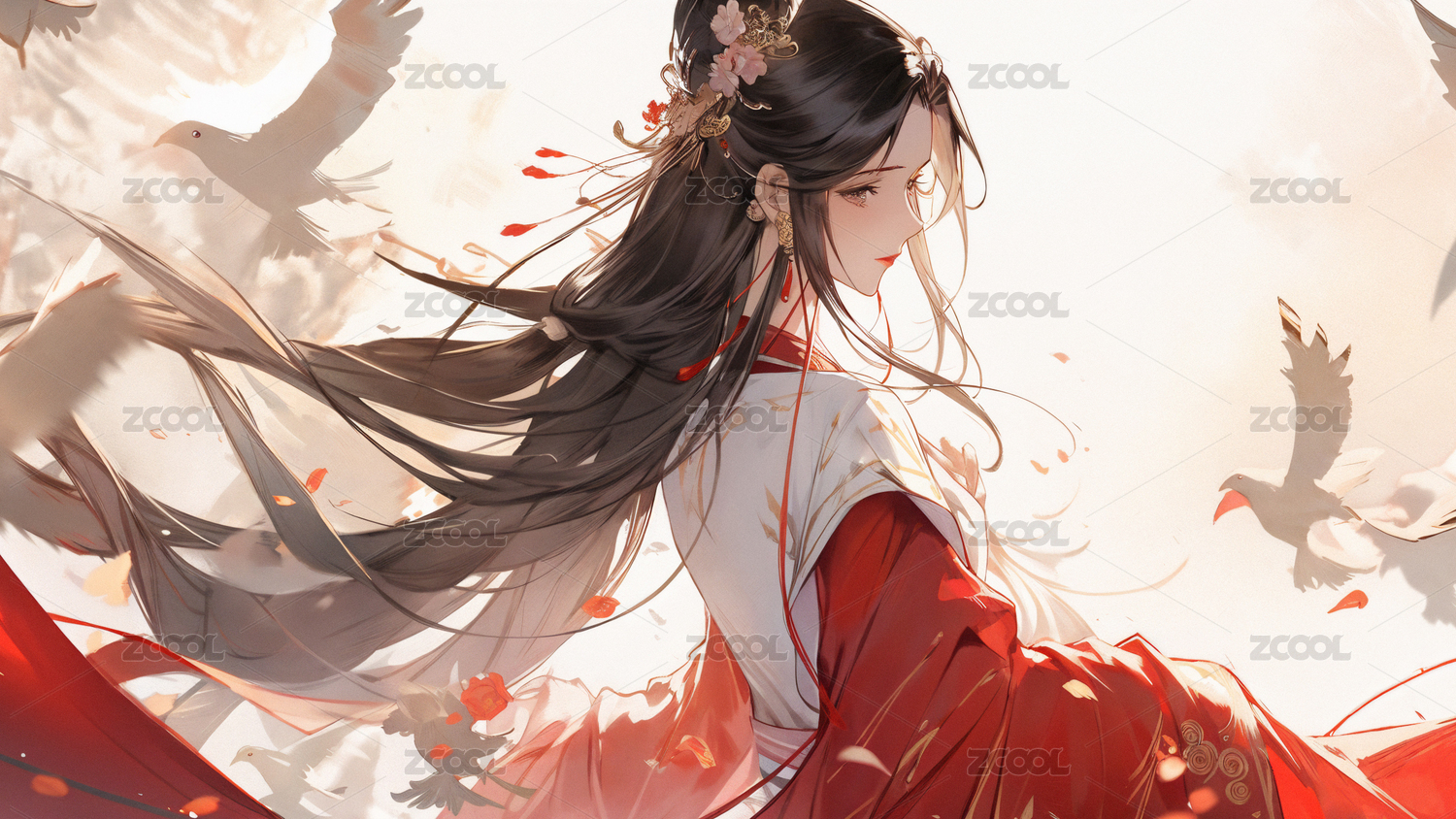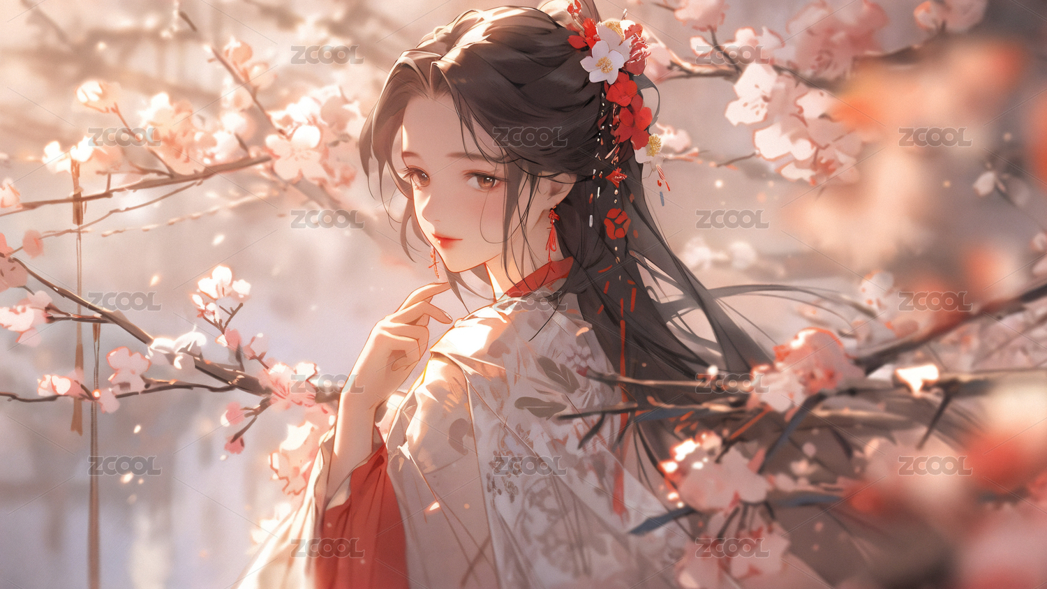 手绘卡通动漫唯美可爱的中国古风古装女孩插