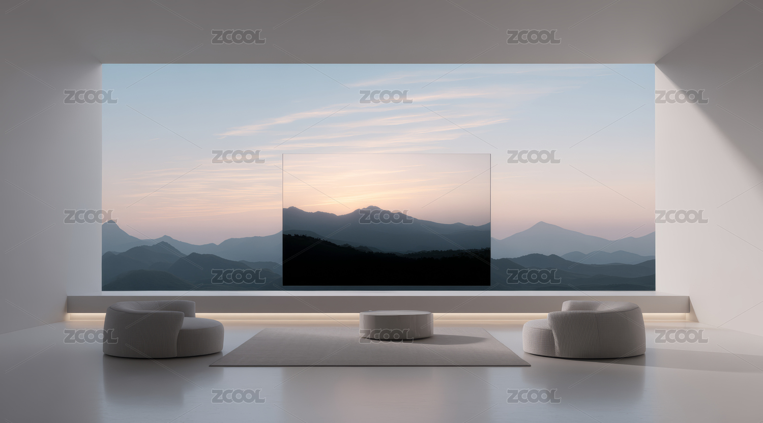 极简客厅的静谧山景