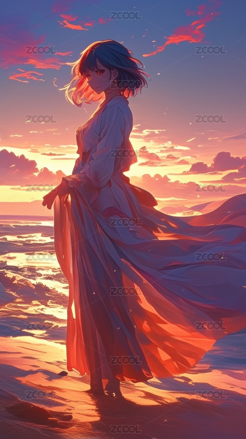 美少女日系卡通漫画清新治愈唯美AI数字艺