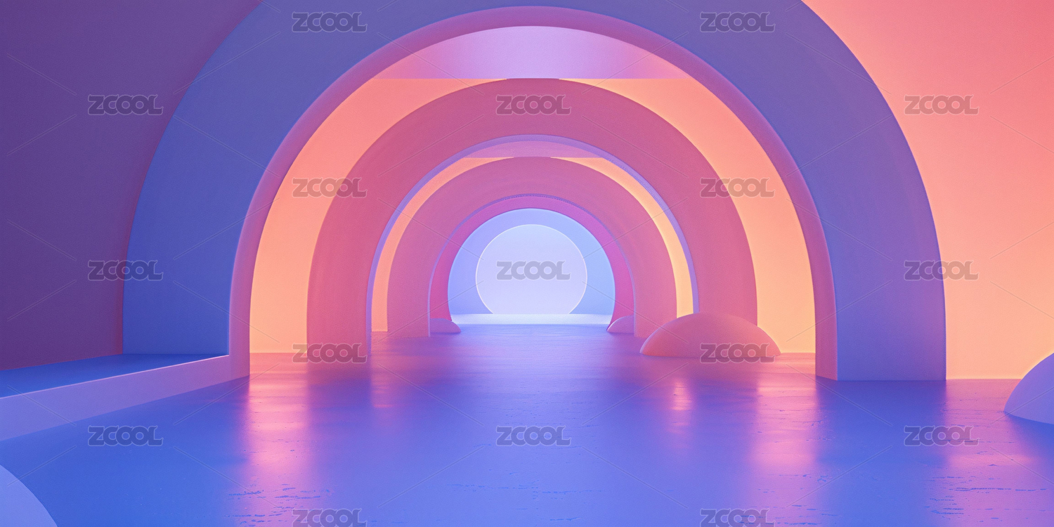 房间,光隧道,蓝色,粉色,紫色,白色,金色,极简,舞台,设计