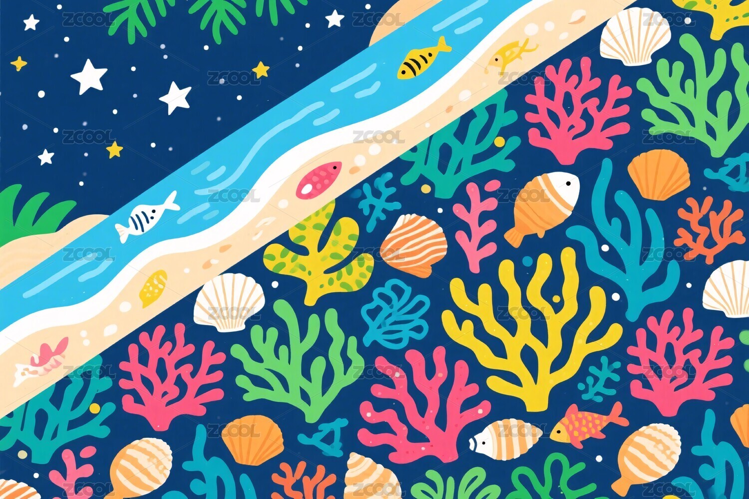 海洋,珊瑚,海星,小鱼,贝壳,海草,水草,插画,卡通,矢量