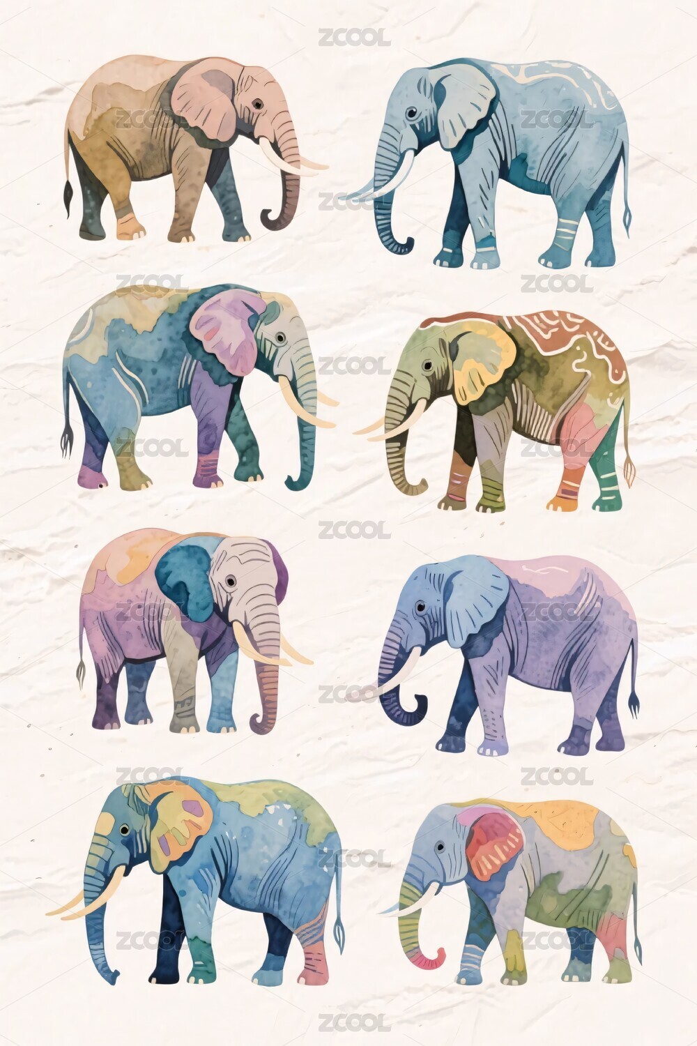 大象,水彩,插画,矢量,模板,动物,艺术,背景,创作,装饰
