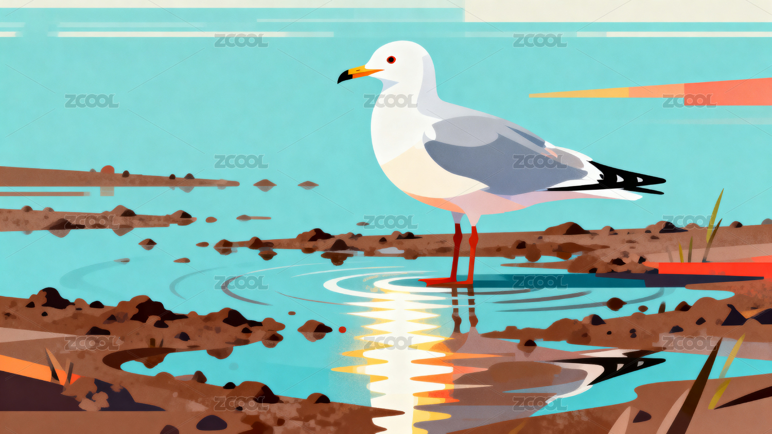 海鸥,沙滩,插画,卡通,动物,鸟类,矢量,扁平,海洋,天空