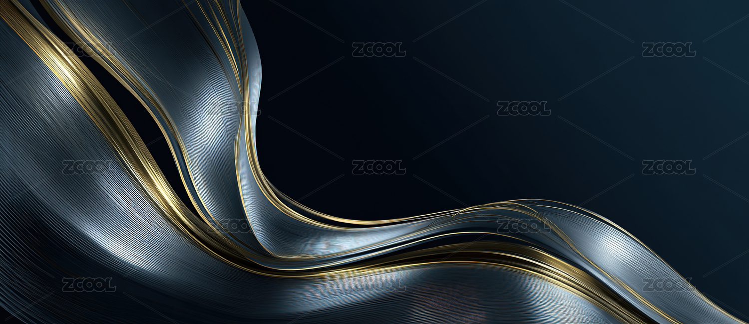 金色线条在深蓝背景上的流动形态
