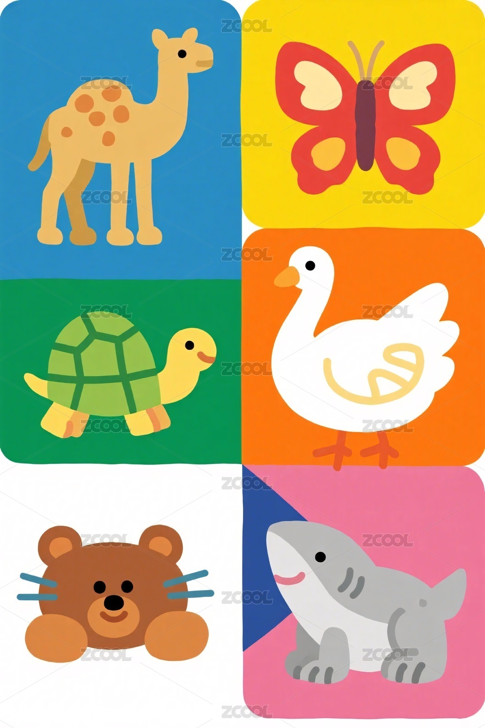 卡通动物,插画,大象,长颈鹿,鲨鱼,斑马,狮子,绵羊,青蛙,海豚