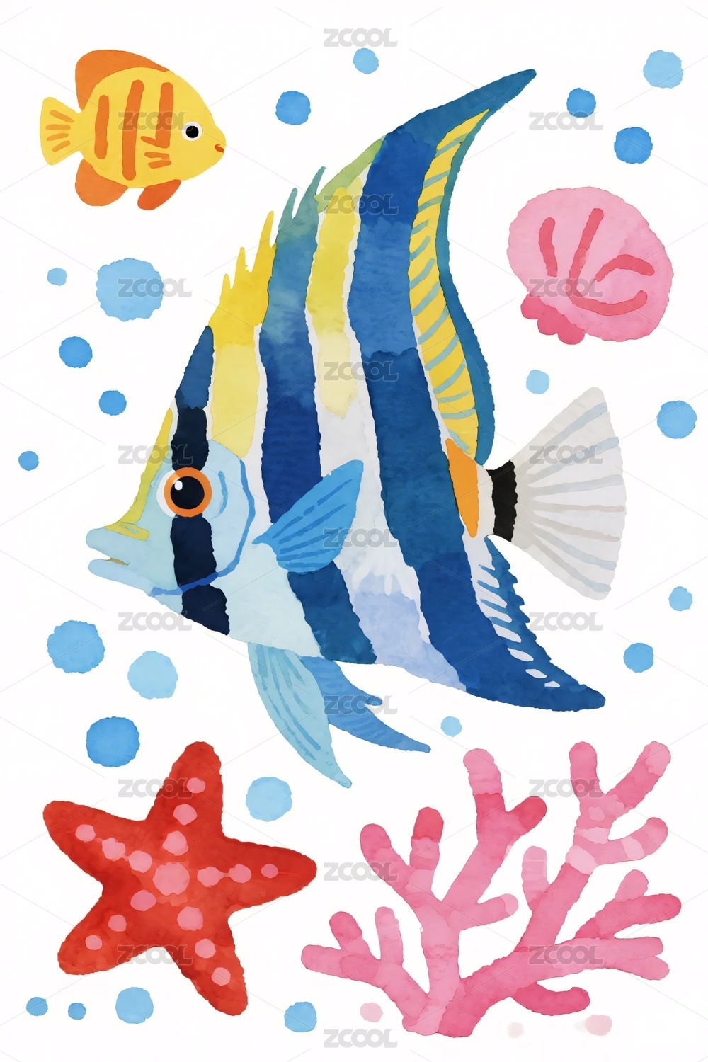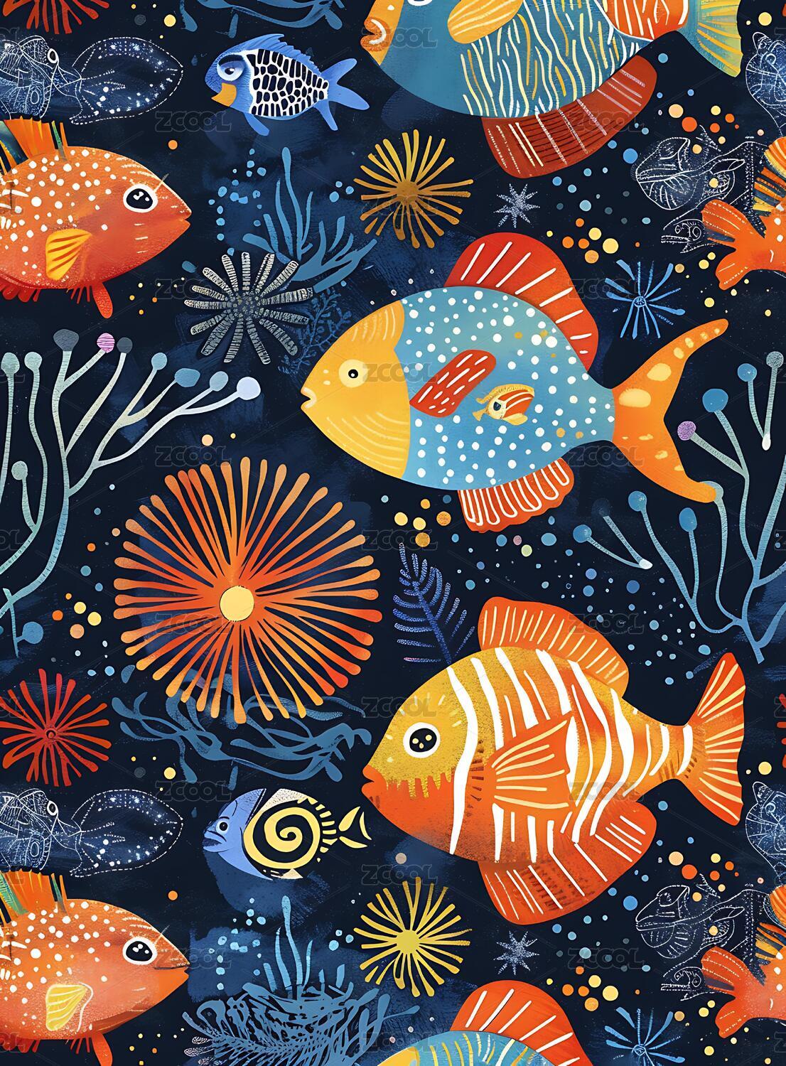 色彩斑斓的海洋生物插画