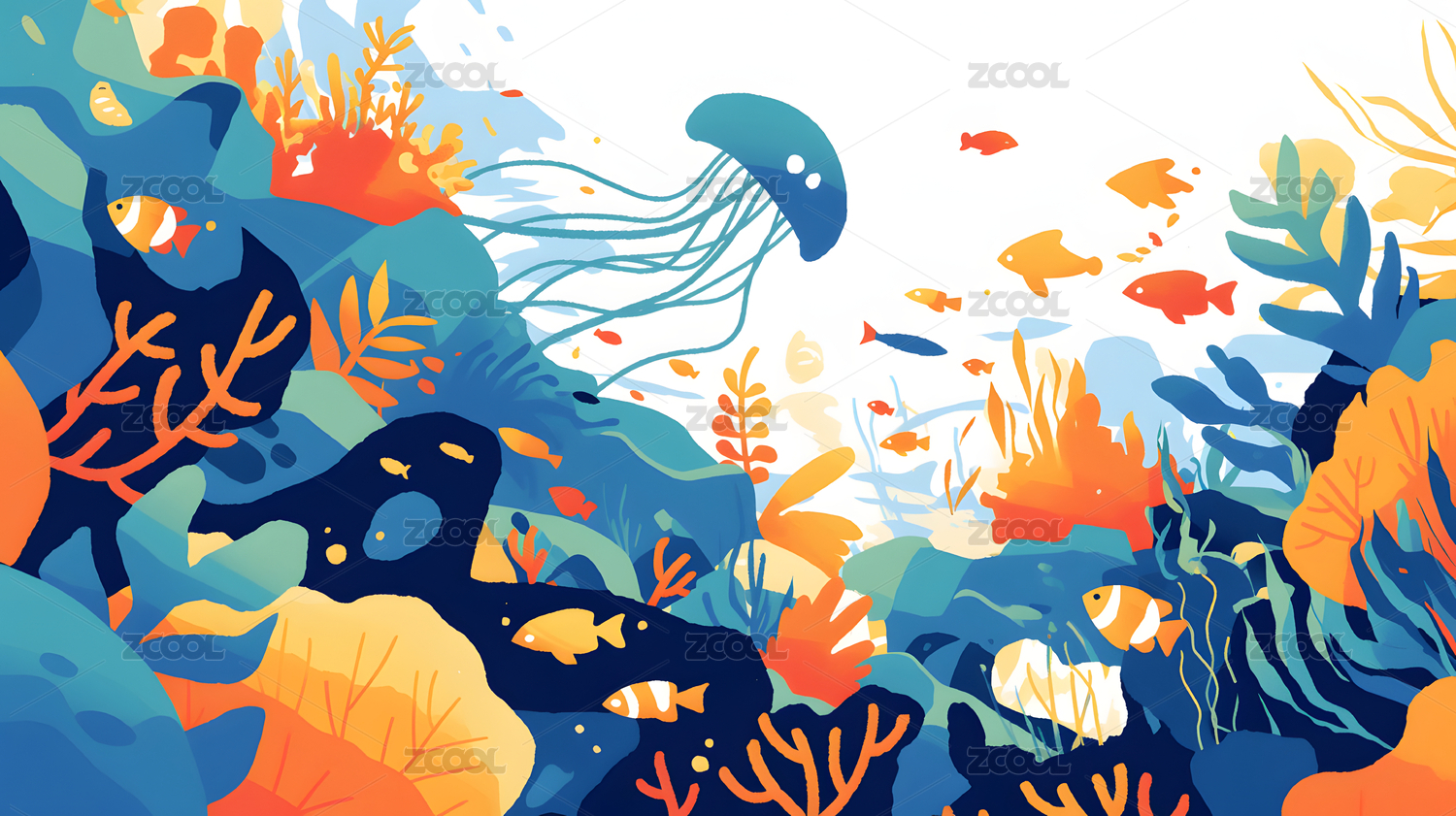 海底世界彩色插画壁纸