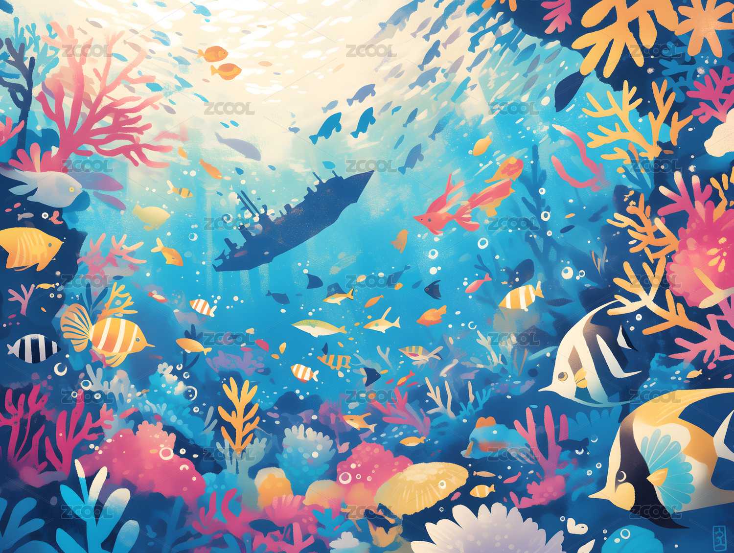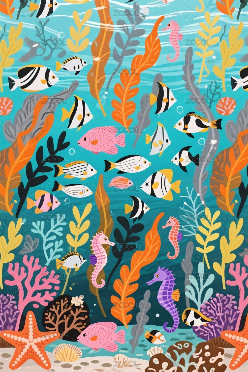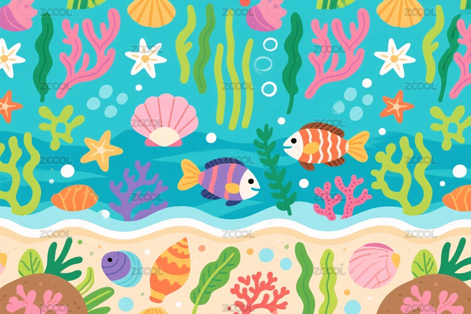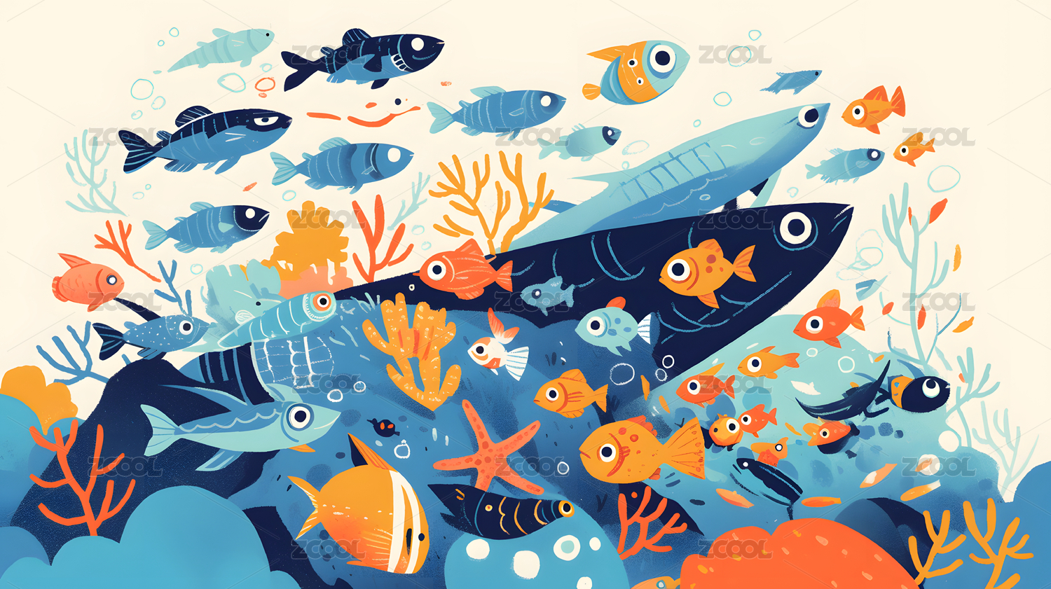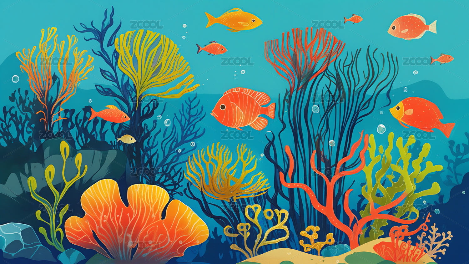 海底彩色海洋插画