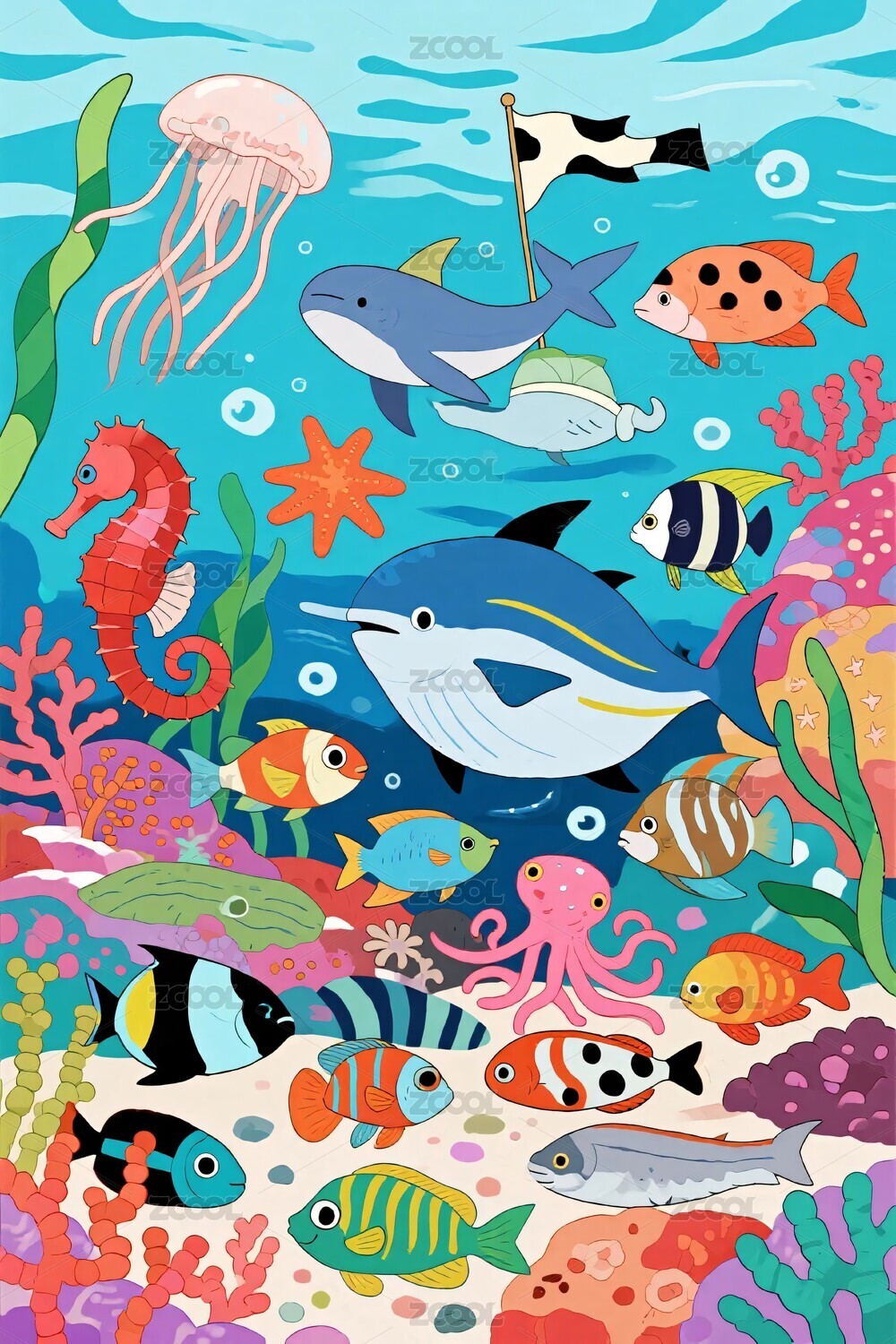 海底彩色童趣插画