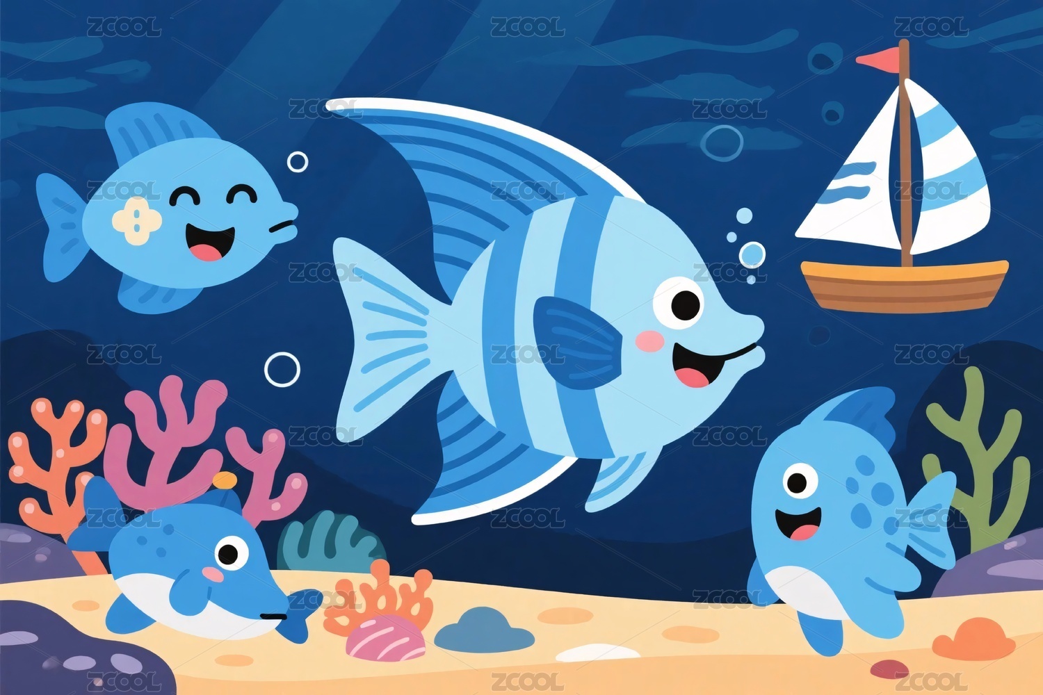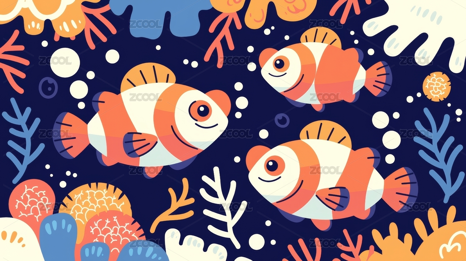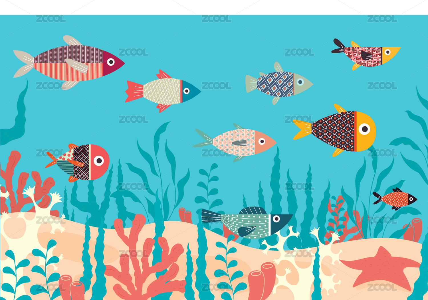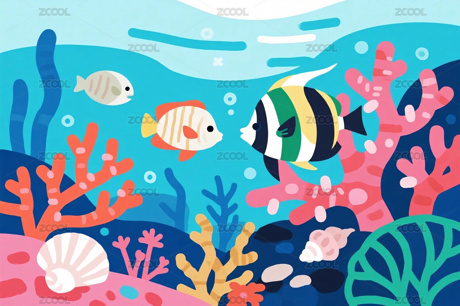 卡通海洋珊瑚鱼插画