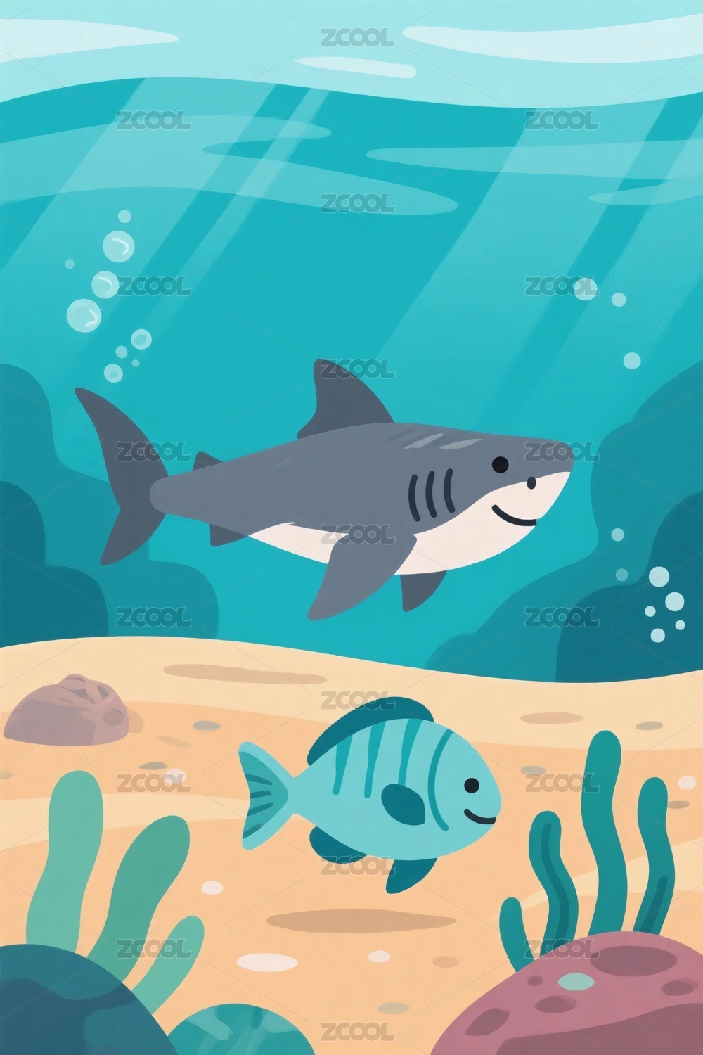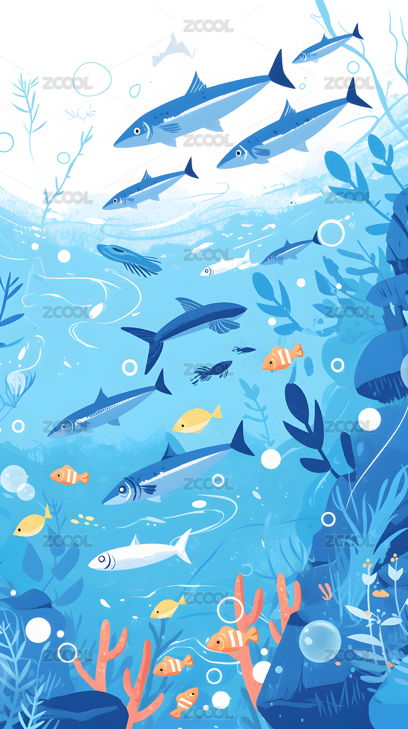 海洋,海底,鱼类,珊瑚,海草,气泡,卡通,插画,矢量,背景