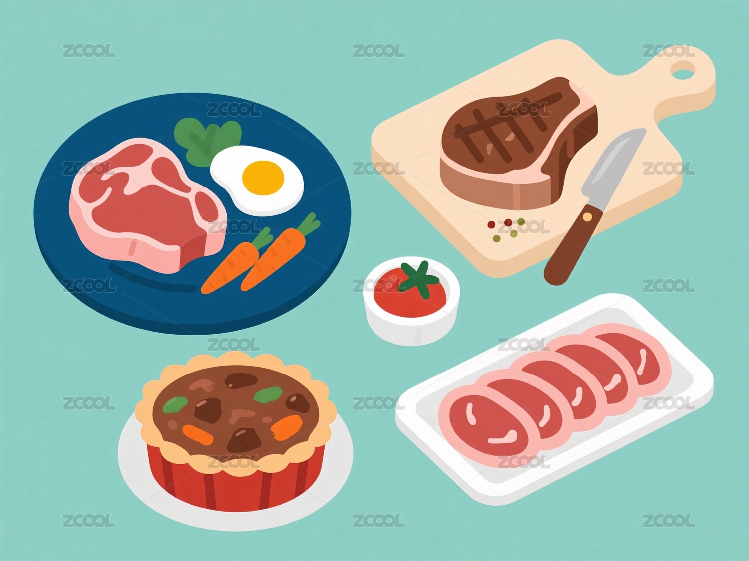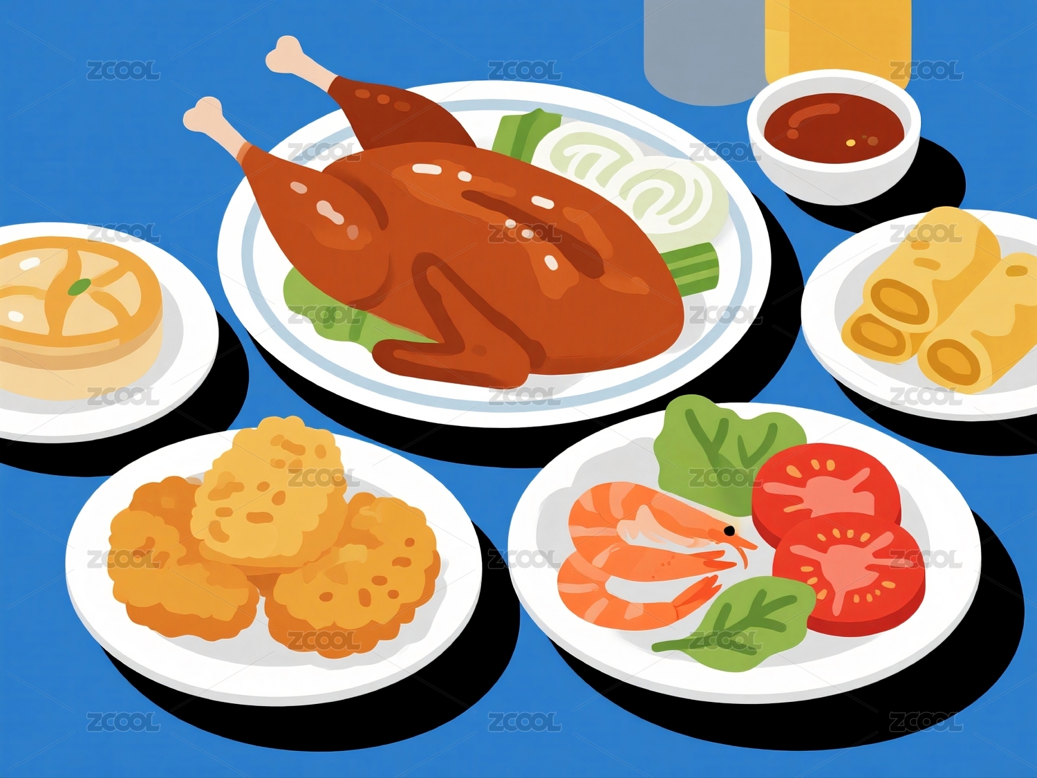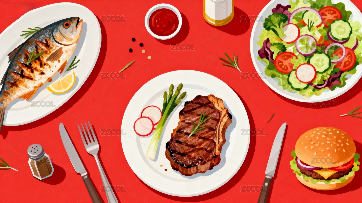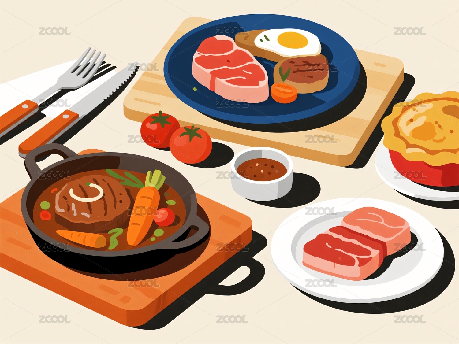 美食餐盘插画