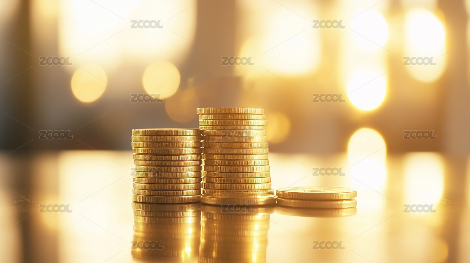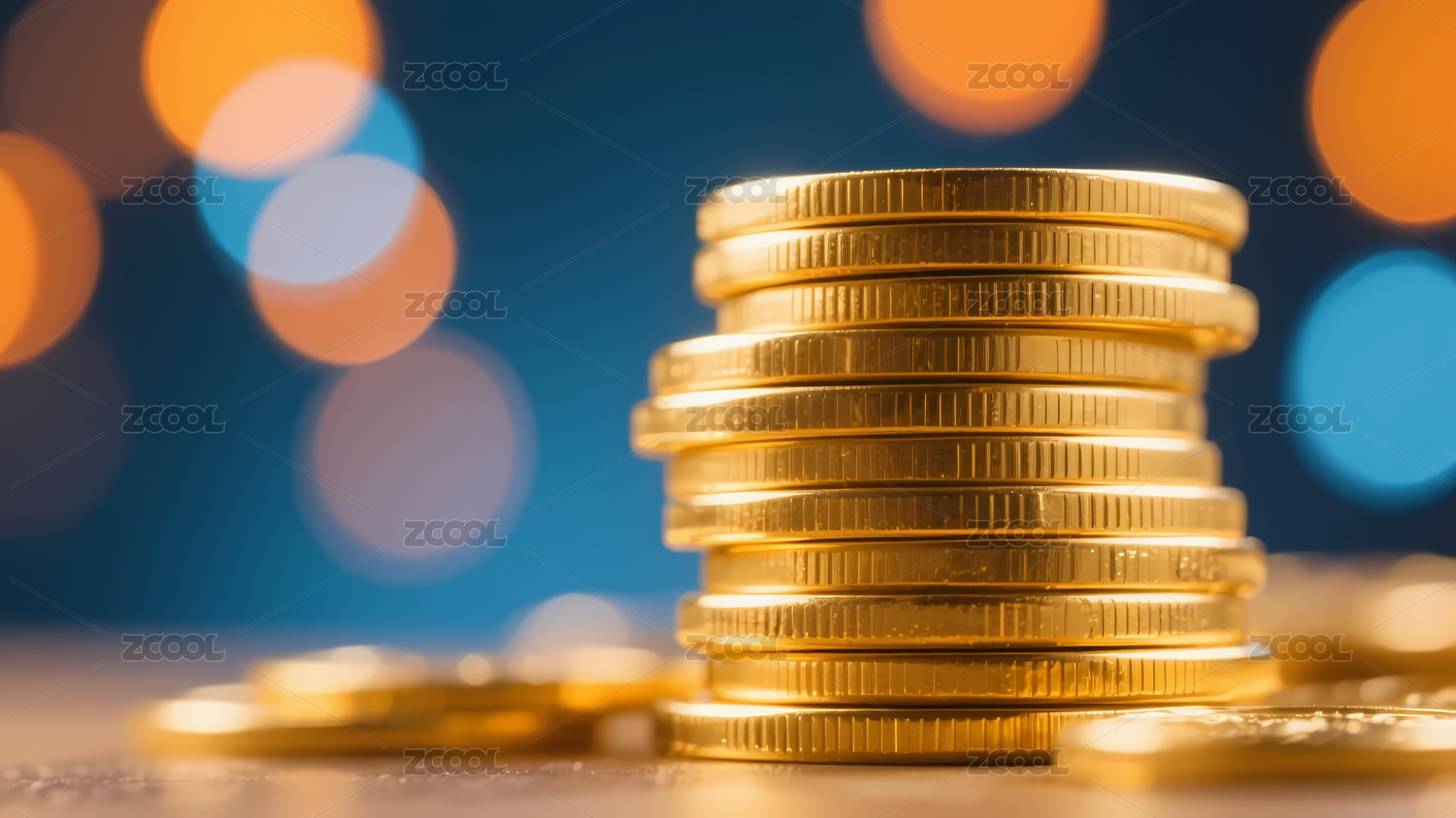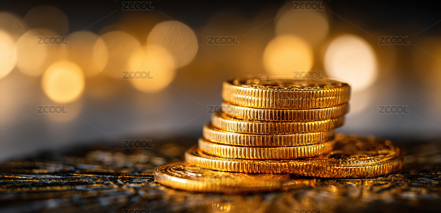 阶梯金币堆柔和光斑