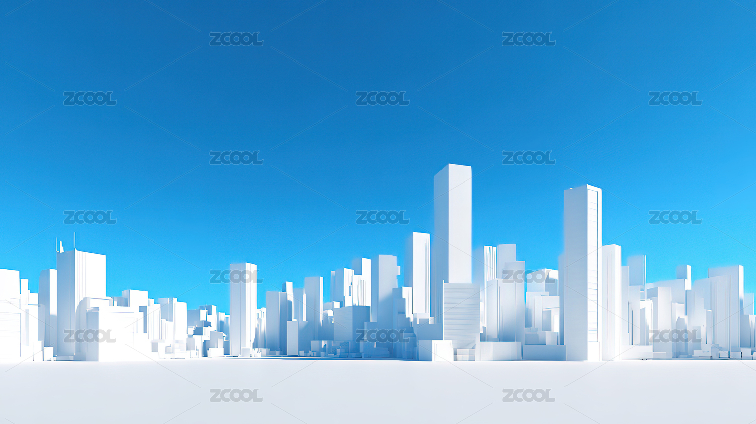白色城市建筑群蓝天背景