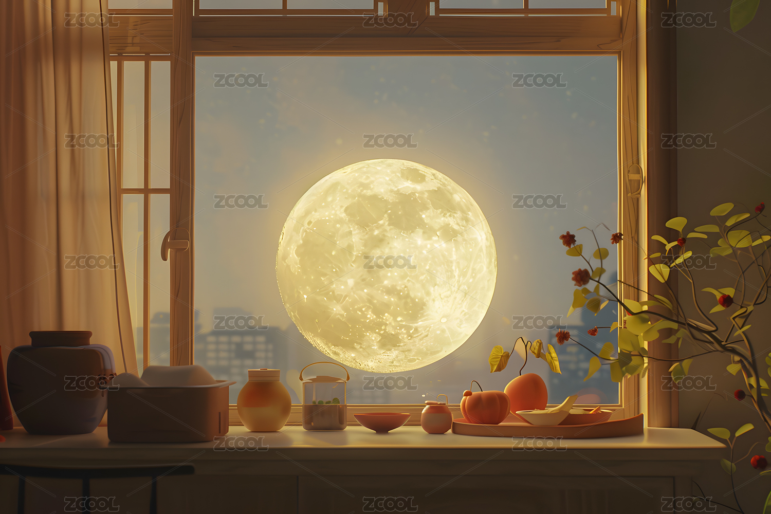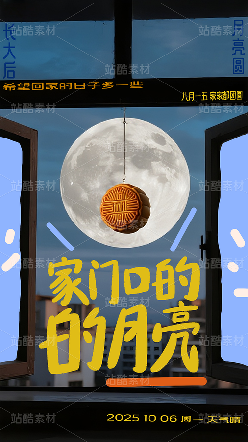 窗外圆月中秋节海报意境背景