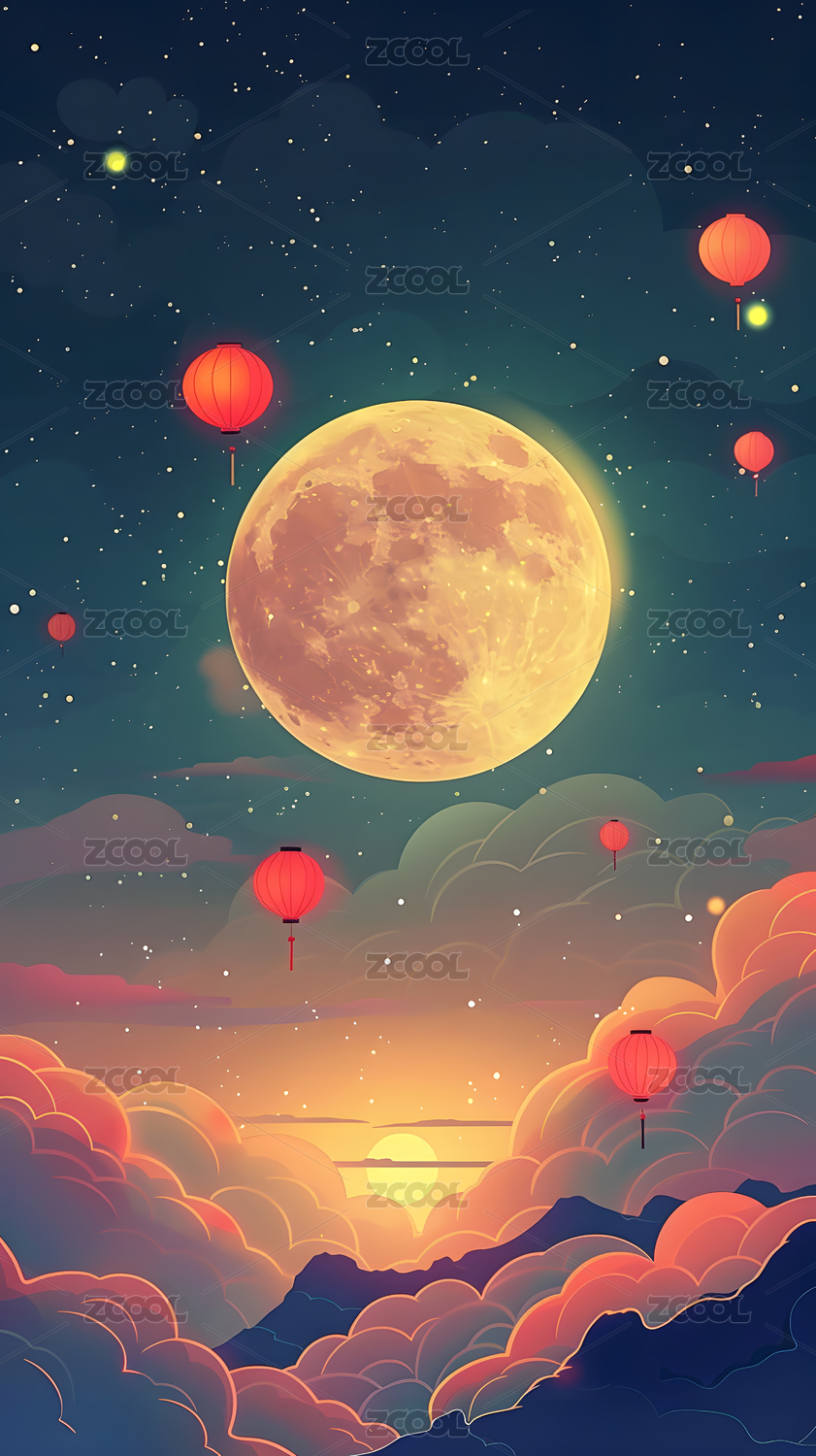 月满中秋艺术字插画背景