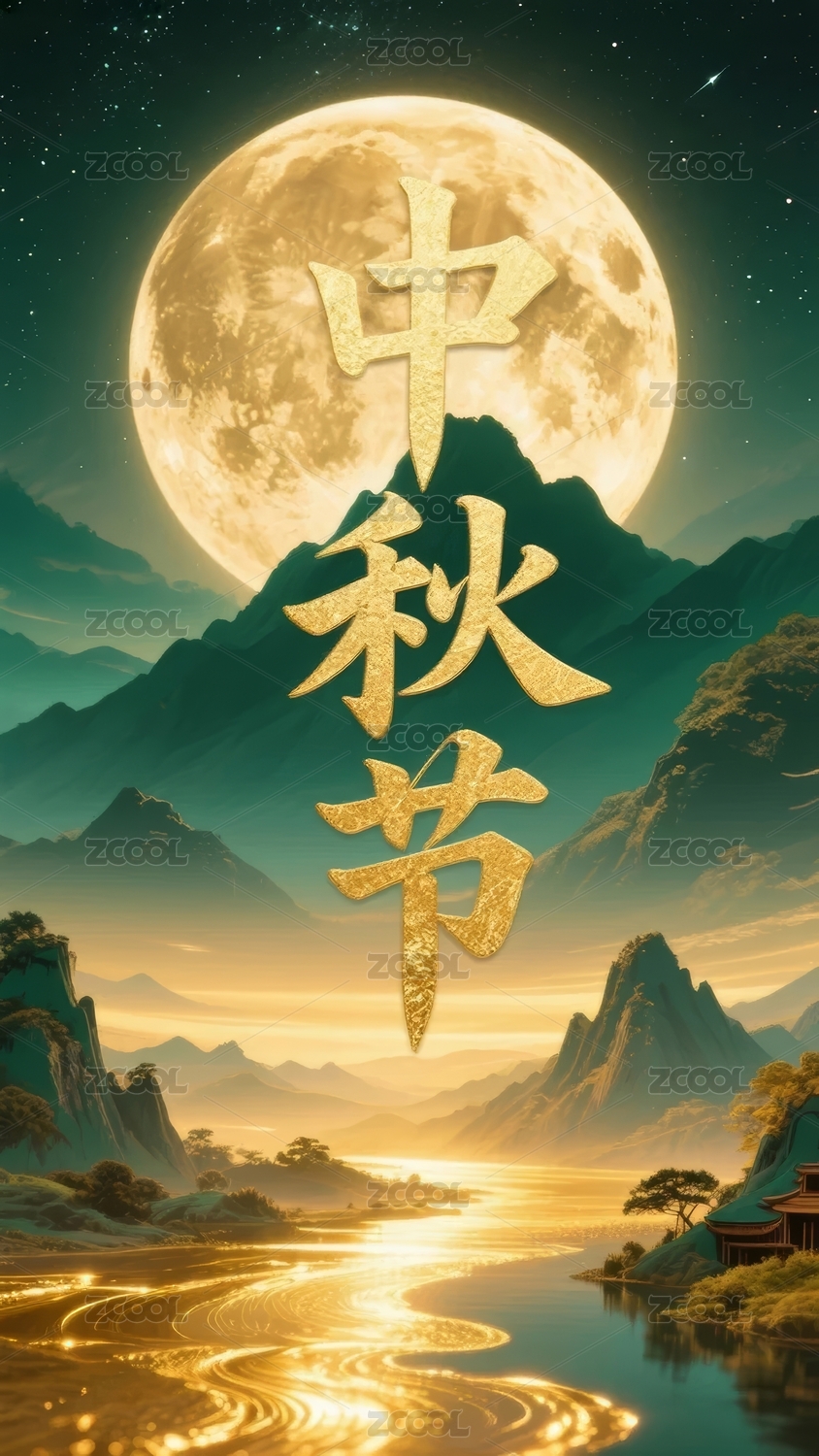 中秋节海报月饼,灯笼桂花,中式风格月亮,中秋佳节