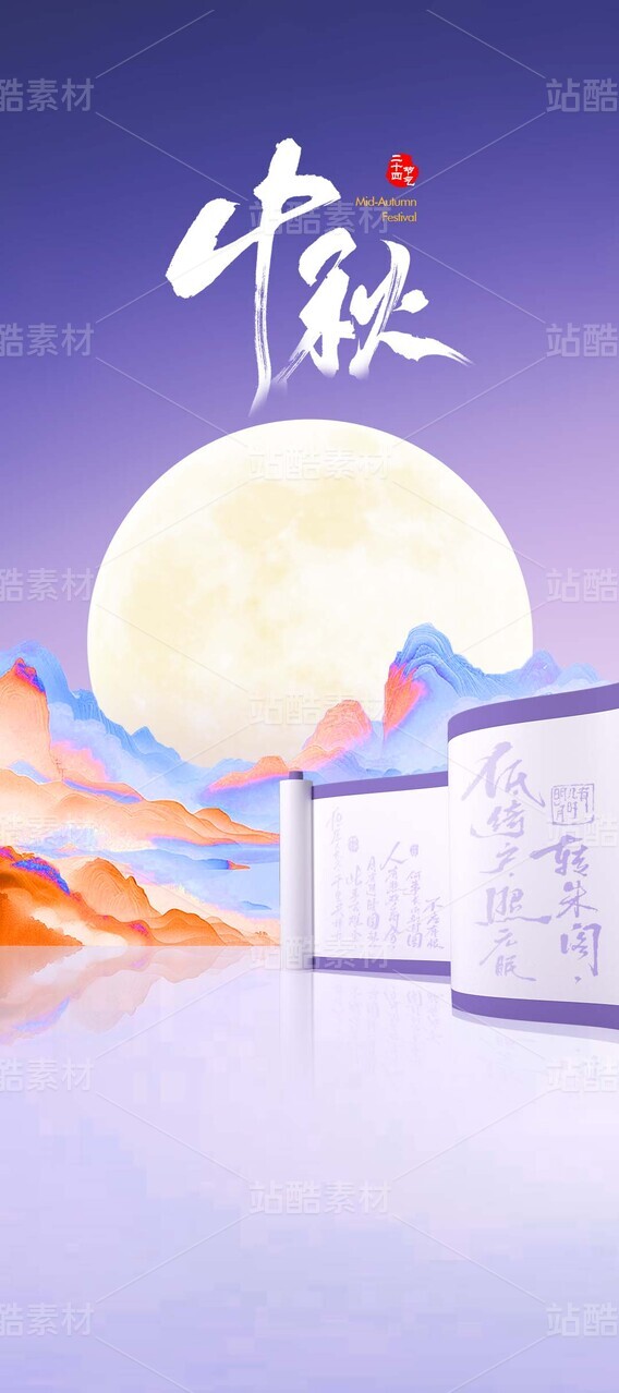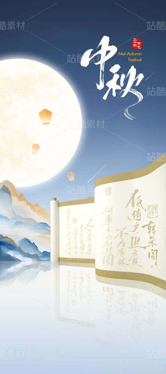中秋节海报月饼,灯笼桂花,中式风格月亮,中秋佳节