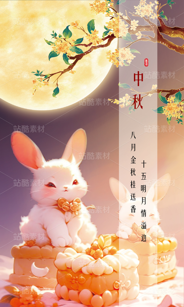 中秋节中国风月饼兔子满月桂花古建筑节日模板