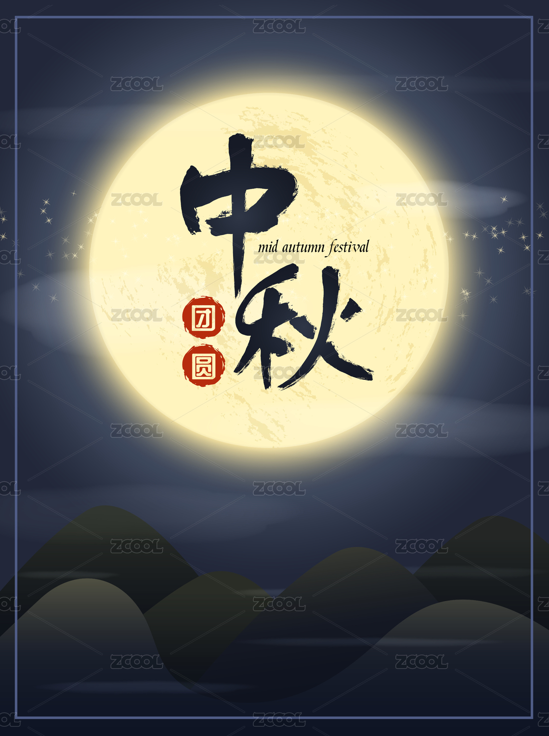 中秋节中国风月饼兔子满月桂花古建筑节日模板