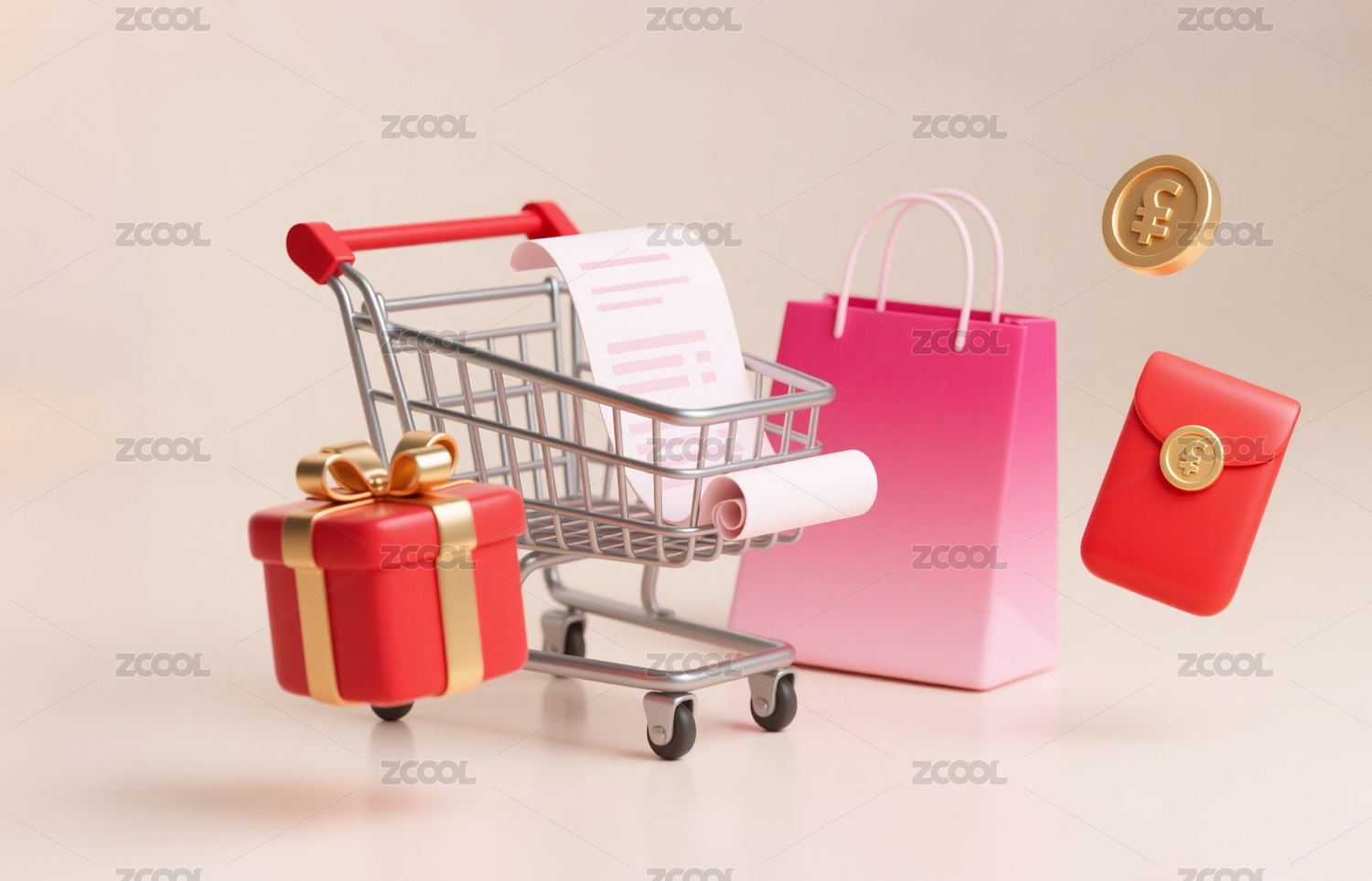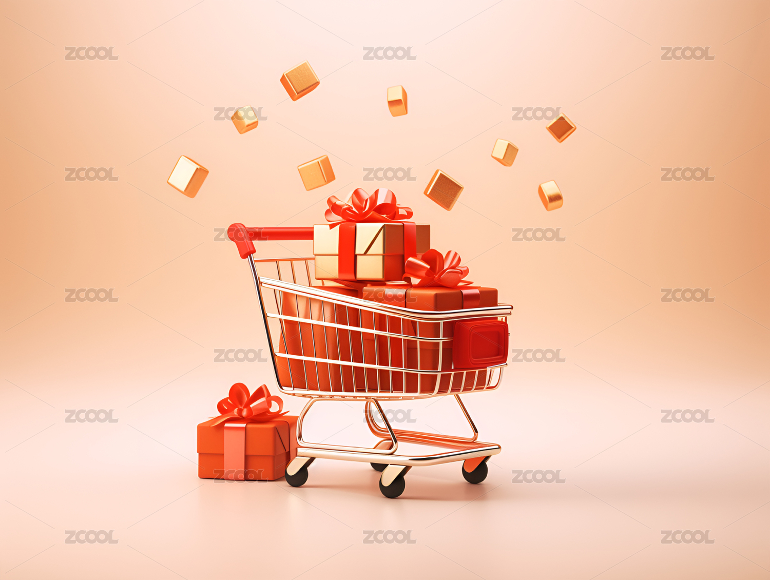 购物车内的礼物与金币象征消费