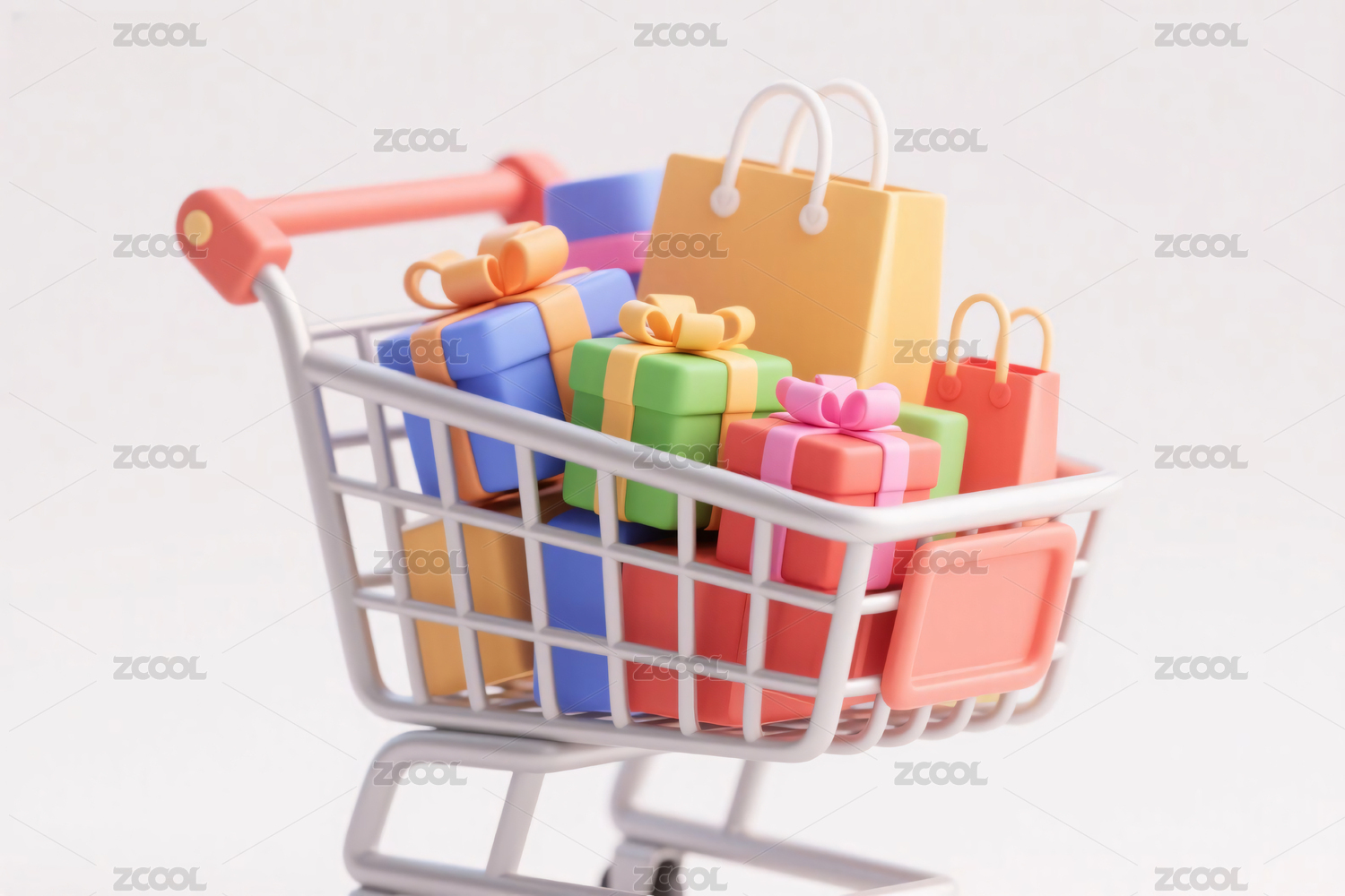 三维卡通购物车购物主题3D渲染
