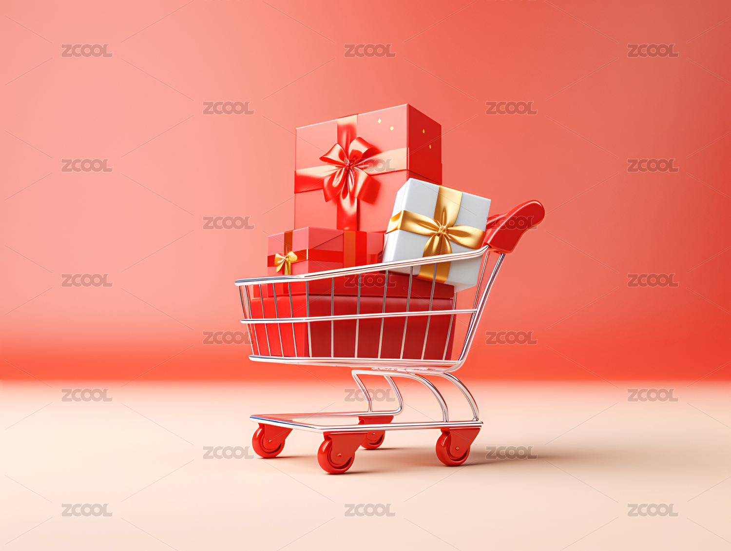 购物车上的红色礼物盒